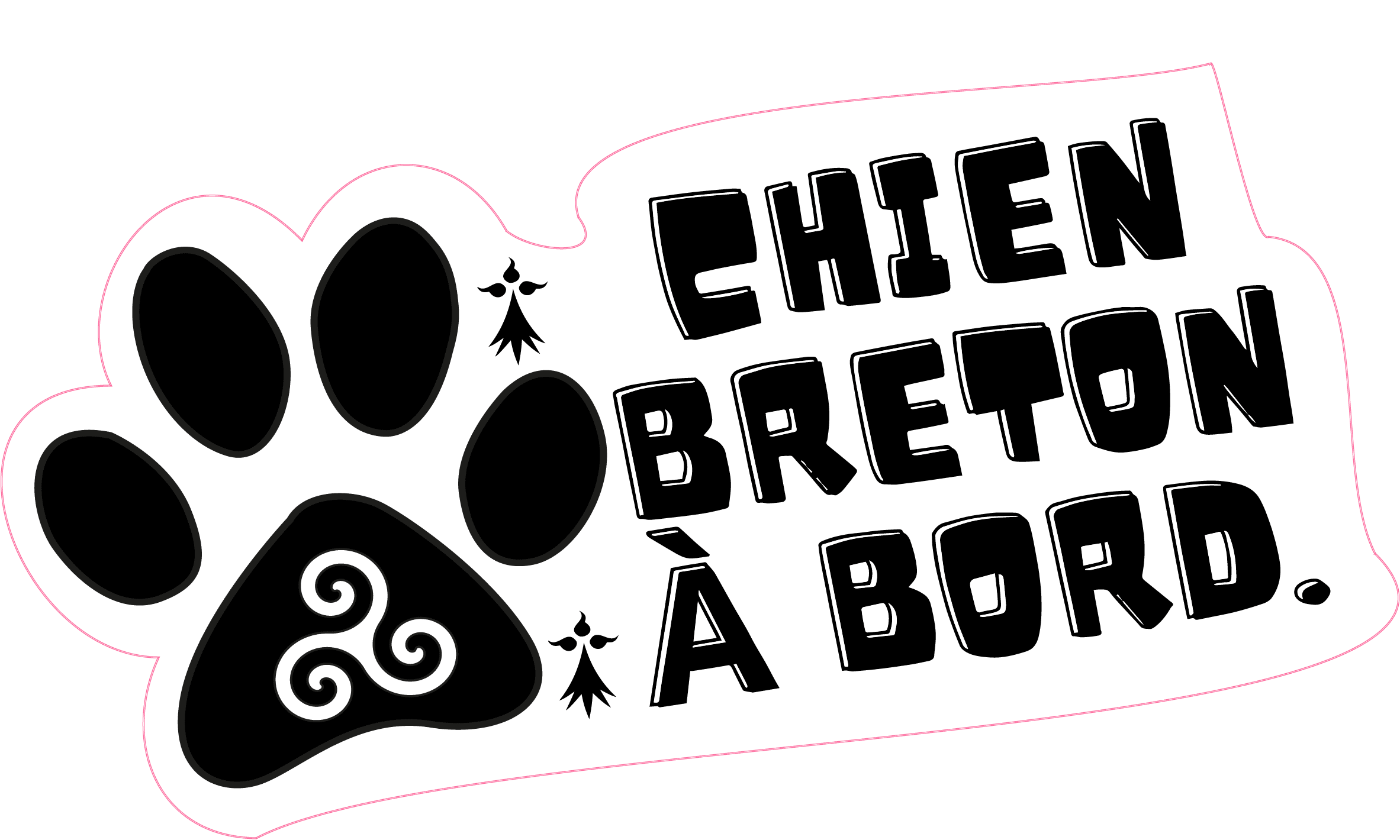 - Dessin d’une patte de chien et texte « Chien Breton à Bord »