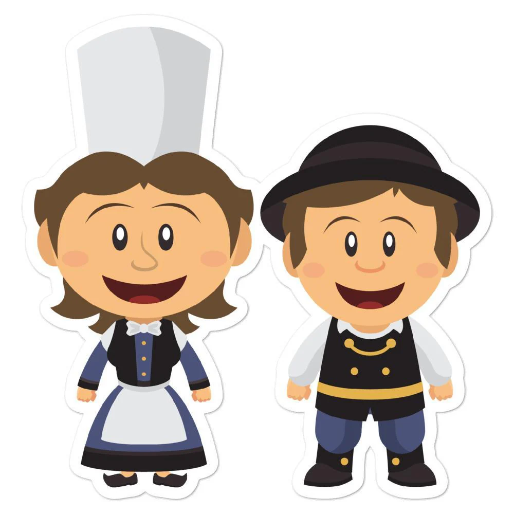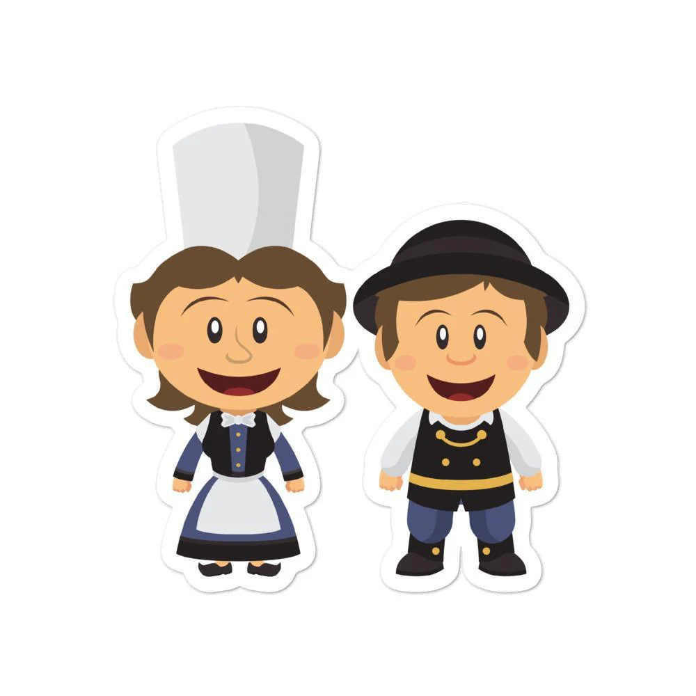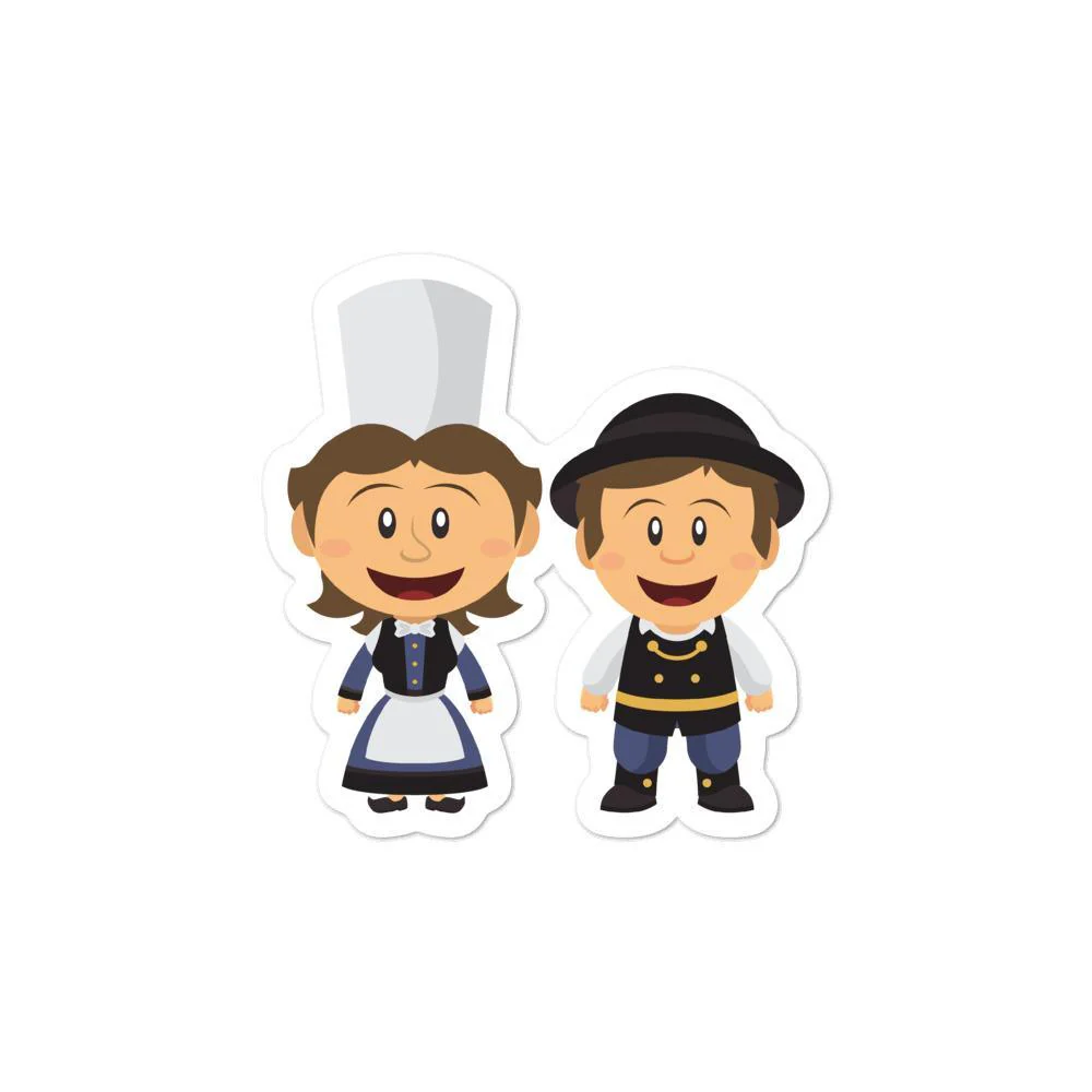 Autocollant découpé représentant un couple de petits Bretons en habit traditionnel