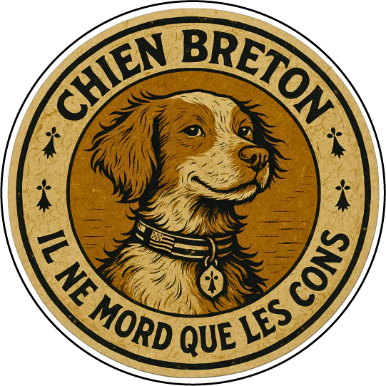 Affirme ton caractère (et ton sens de l’humour breton) avec cet autocollant vintage « Chien Breton ». Son style rétro façon étiquette ancienne rend hommage à nos fidèles compagnons bretons — fiers, malins et toujours prêts à défendre leur territoire… mais seulement contre les idiots !