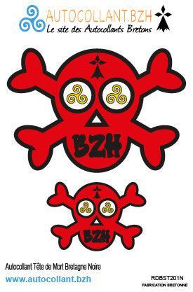 Autocollants Bretons Tête de Mort Bretonne Rouge Noir