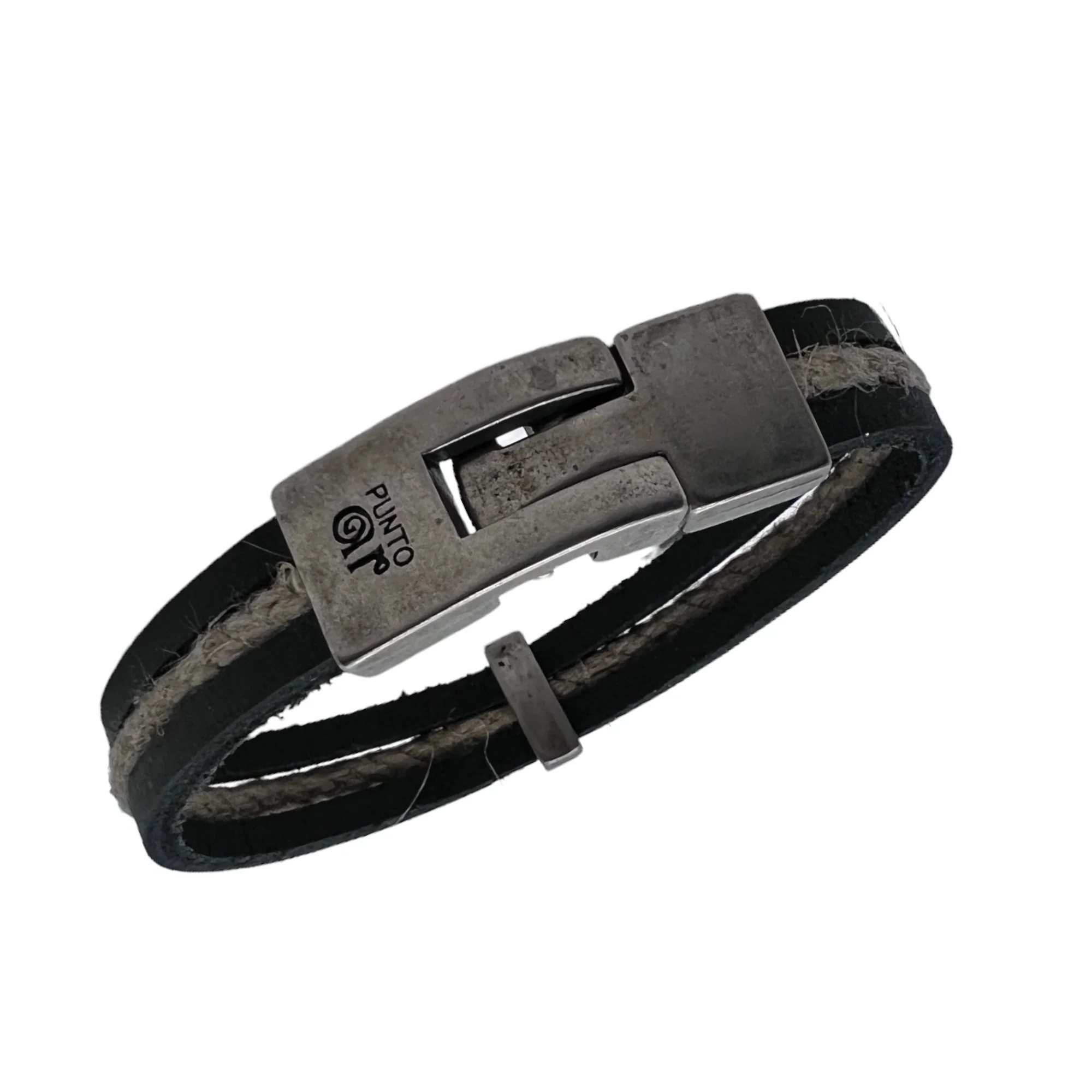 ✨ Alliance de la Nature et du Style : Le Bracelet Punto Ar 115, avec ses lanières de cuir plat et sa corde de chanvre, incarne une fusion parfaite entre élégance naturelle et design contemporain.