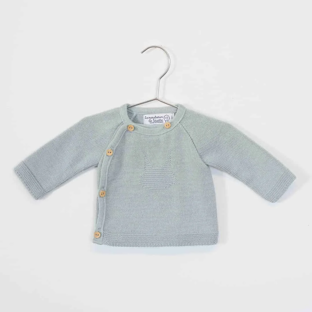 Disponible en 4 coloris, cette brassière en coton est idéale pour les bébés filles ou garçons. Avec une tête de chat tricotée à l’avant de la brassière, ainsi que des boutons en bois, cette brassière en coton sera très mignonne sur bébé ! La brassière en coton est fabriquée dans notre atelier de Pau en France.