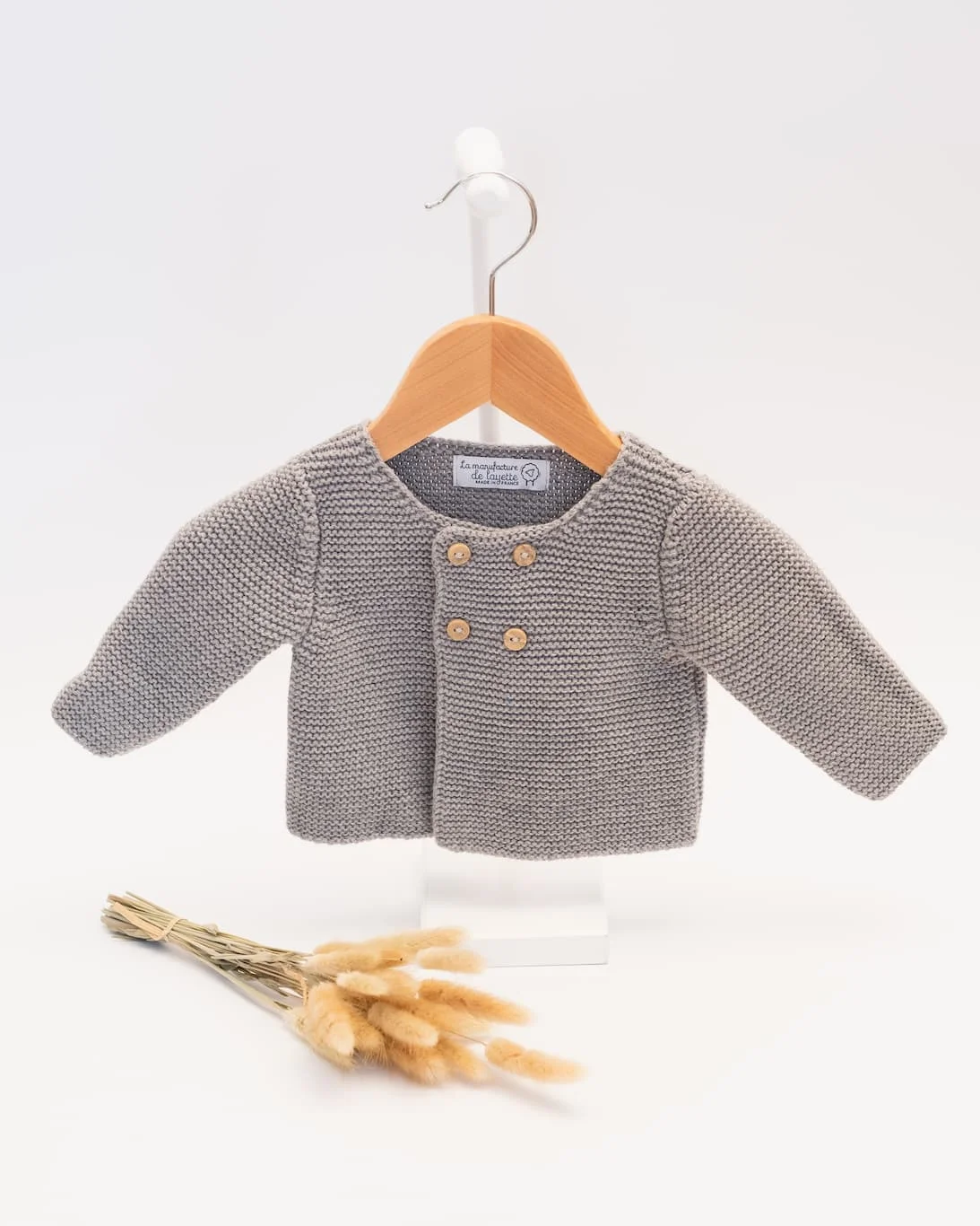 Offrez à votre bébé le meilleur du confort et du style avec notre cardigan en laine et coton, fabriqué avec amour en France pour accompagner les premiers moments précieux de votre petit.