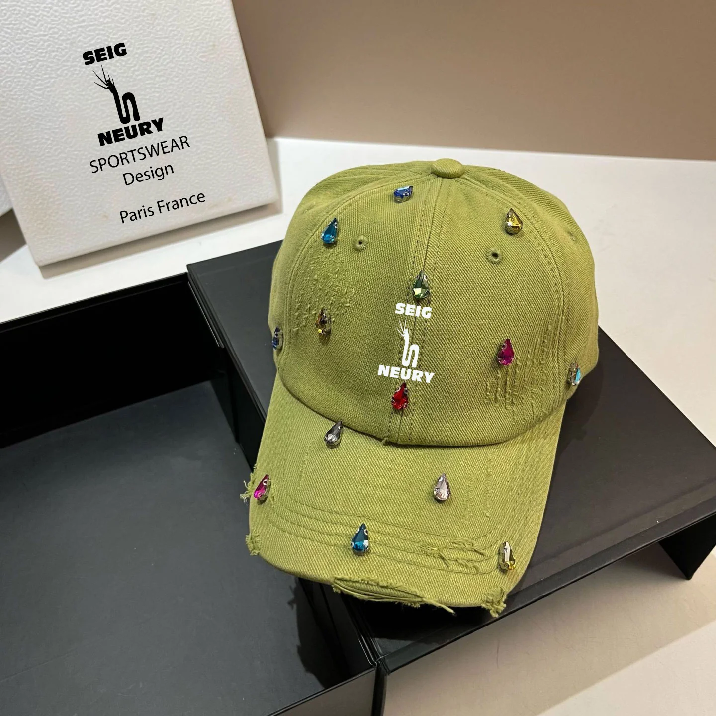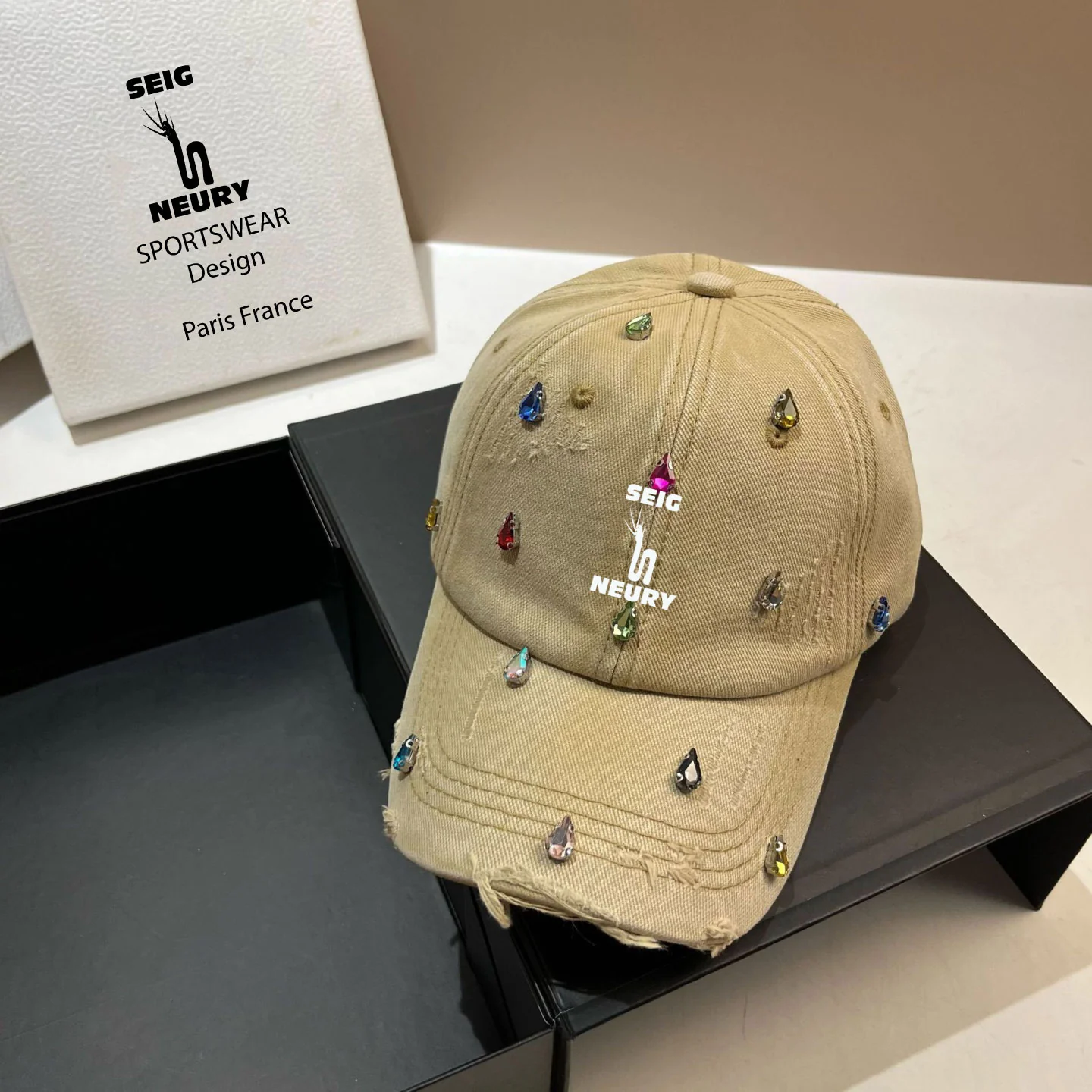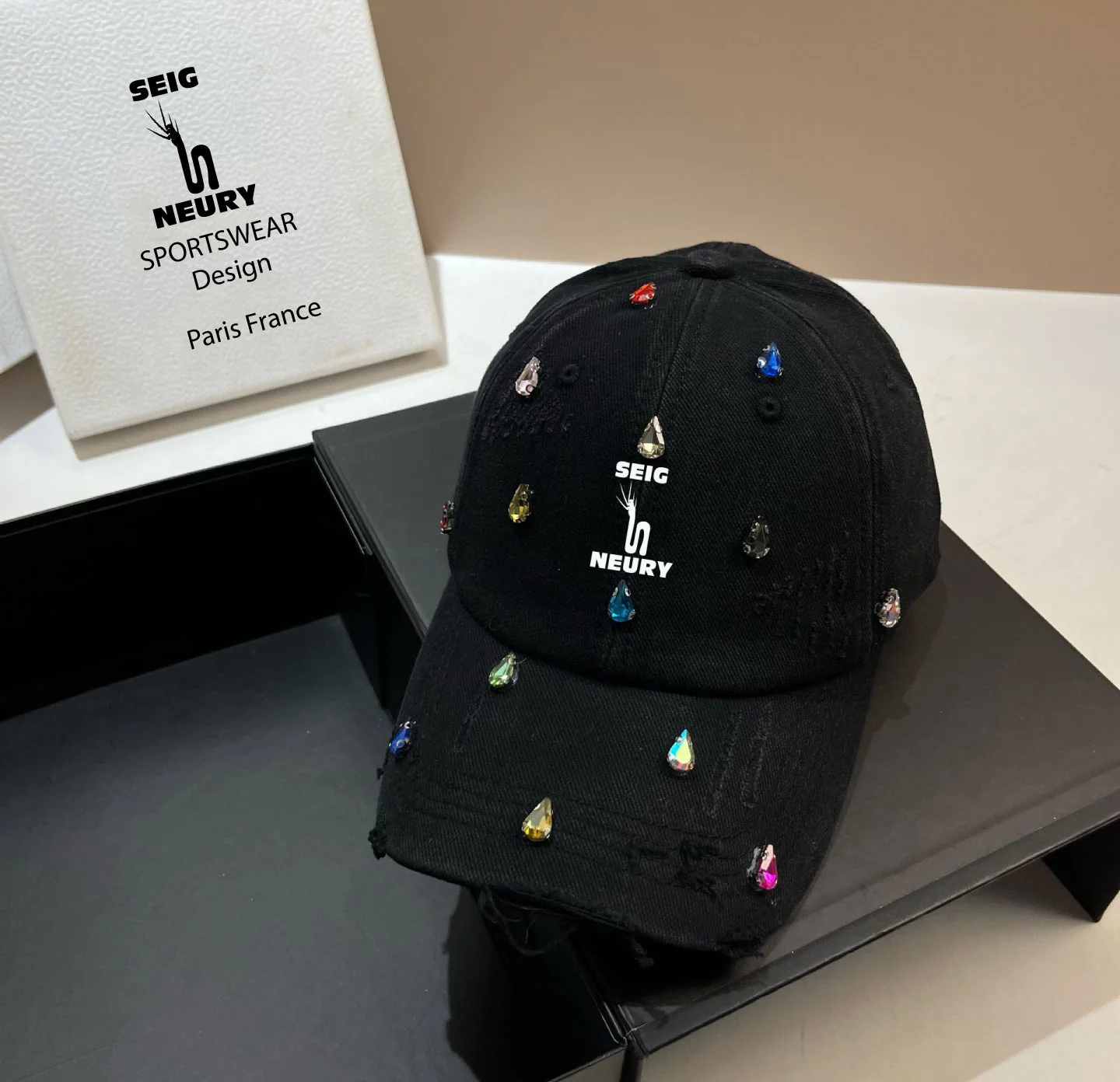 ✨ Brillez avec style et audace grâce à la casquette SEIGNEURY, un accessoire exclusif qui incarne l’élégance et la modernité. Inspirée des tendances coréennes de luxe, cette casquette associe un design délavé unique, un effet poinçonné authentique et des diamants d’eau scintillants pour un look ultra-tendance en 2025.