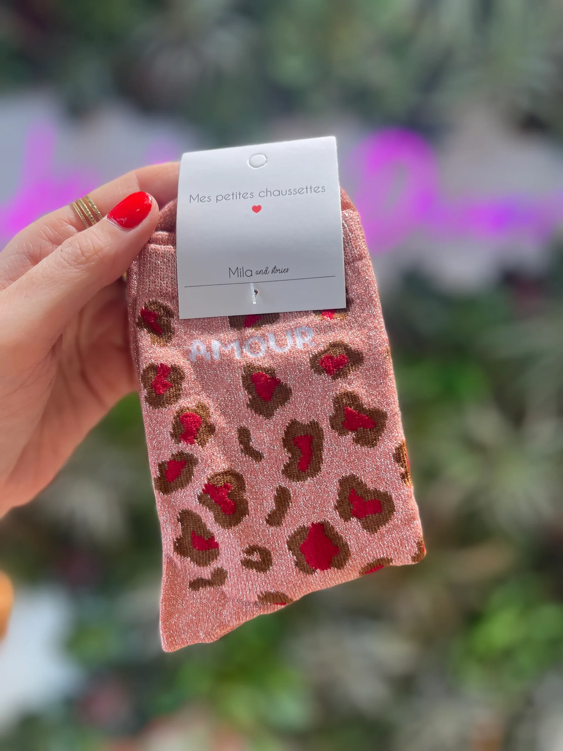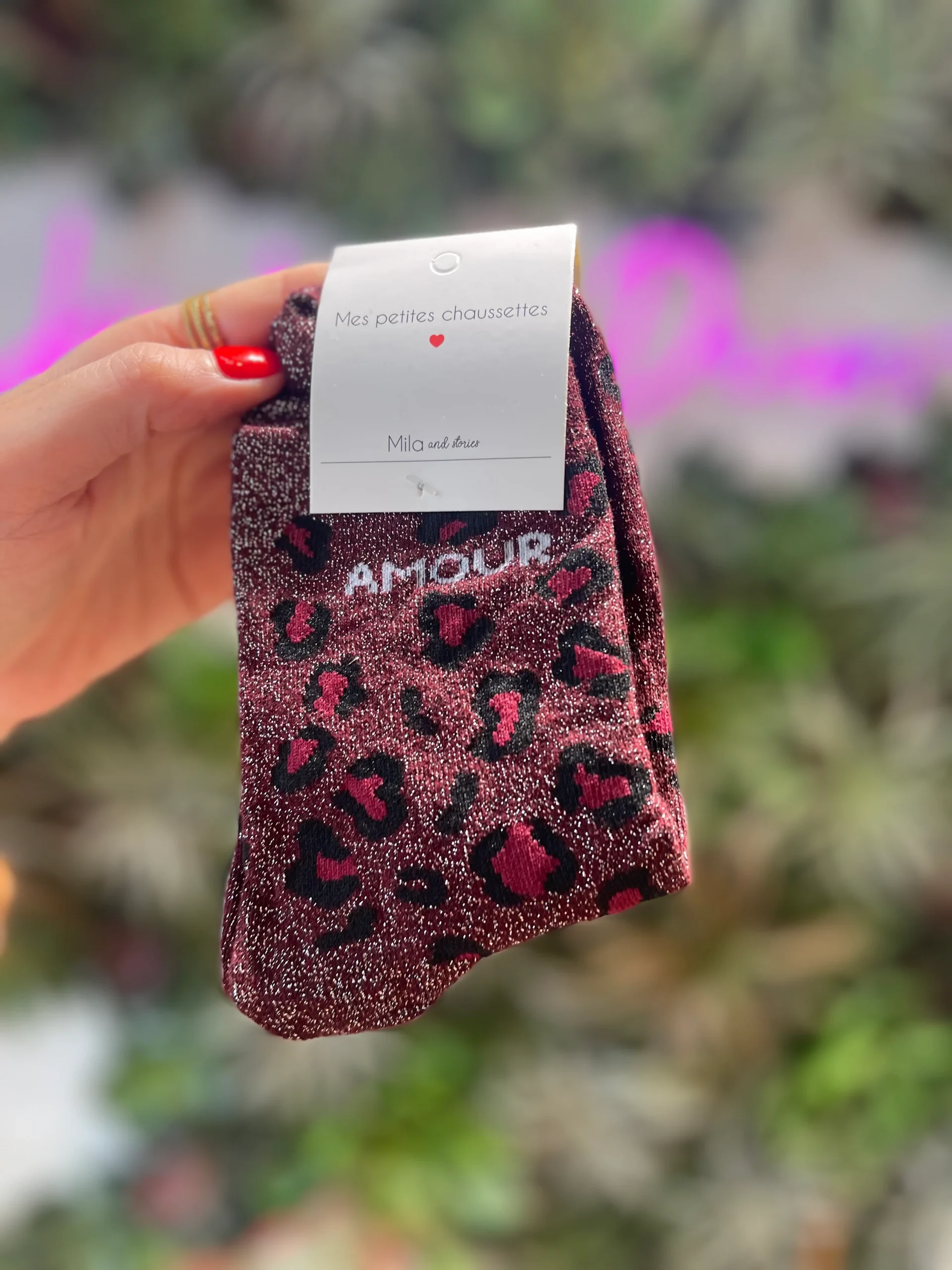 Parce qu’elles allient confort, douceur et style décalé. Le mélange du léopard et du mot « AMOUR » rend chaque paire unique et parfaite pour dynamiser vos tenues.