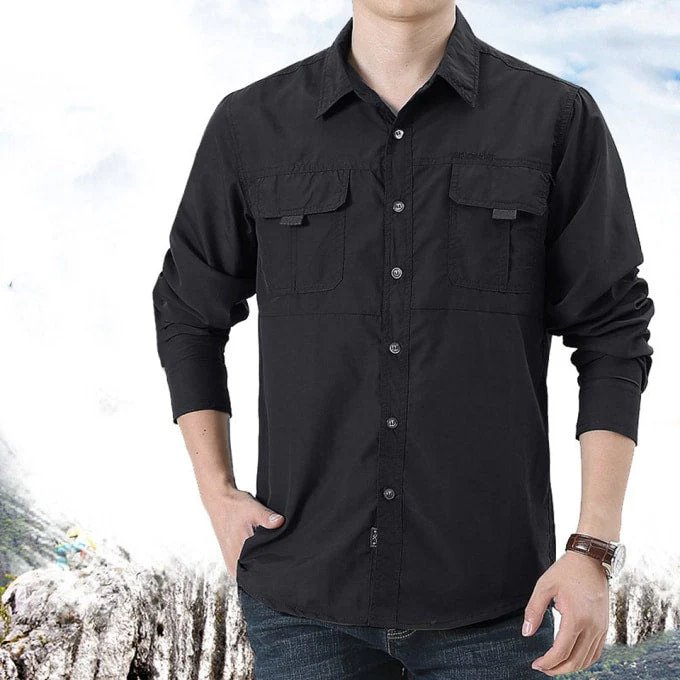 On dirait une chemise classique, cependant elle a de nombreuses propriétés appréciables pour vos activités tels que la pêche ou l’exercice physique. Une chemise militaire imperméable et respirante pour homme.