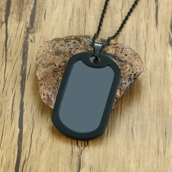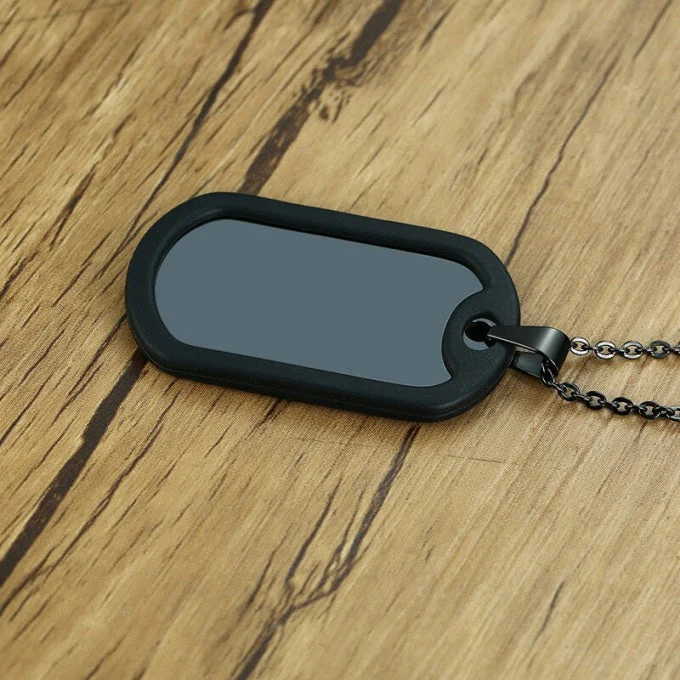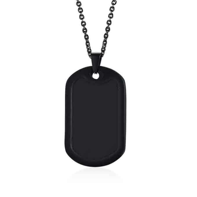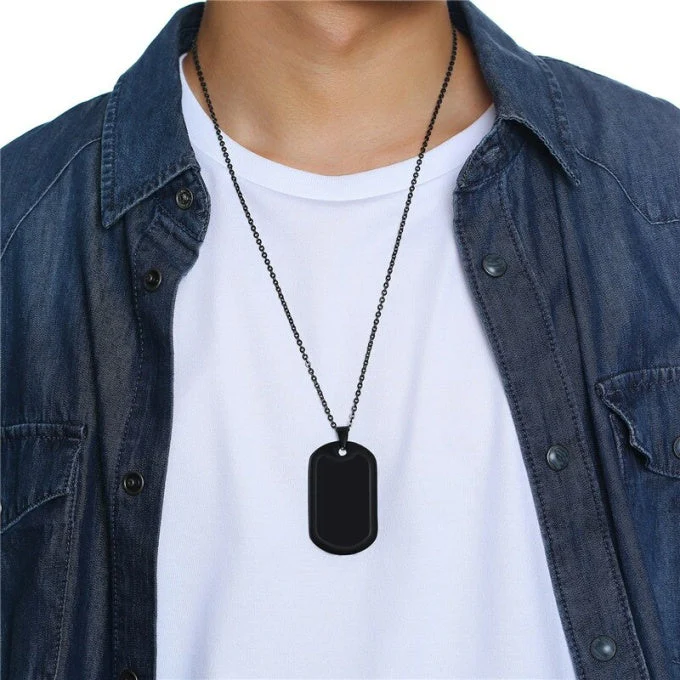 Découvrez notre collier pendentif de style militaire en acier inoxydable. Vous n’avez plus qu’à choisir la plaque en couleur grise ou noire. A la fois sobre et élégant, ce collier en référence aux plaques d’identité des militaires deviendra un accessoire indispensable à votre dressing.