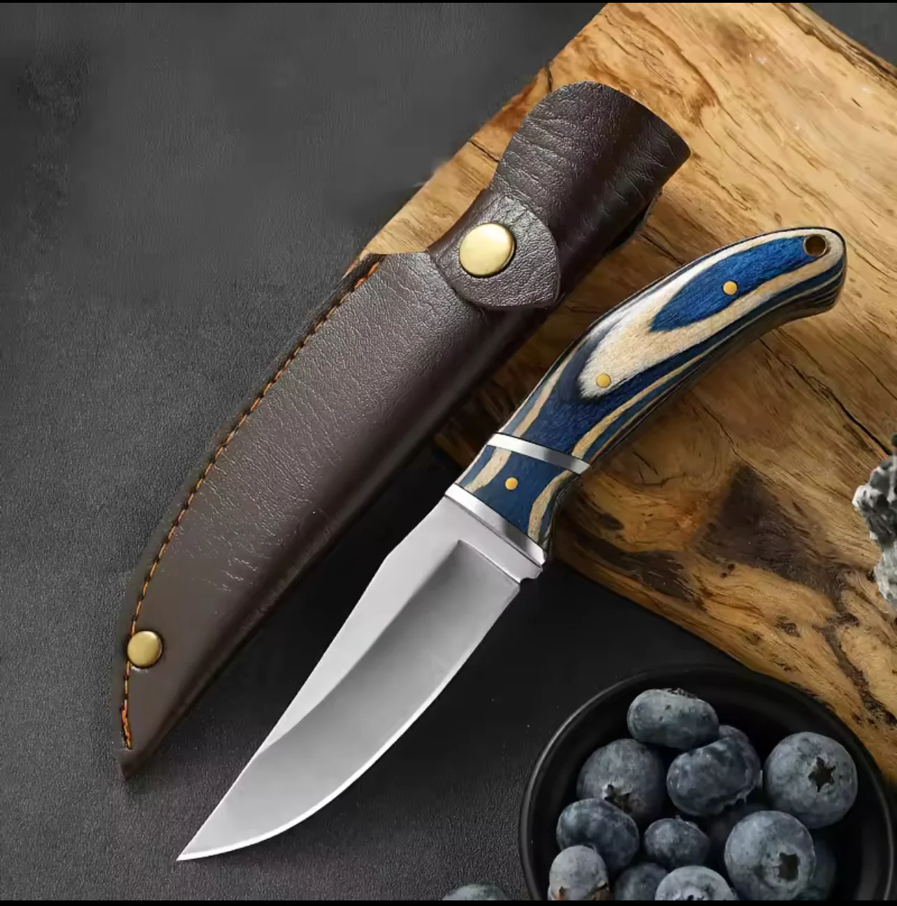 Couteau de Chasse avec Étui en Cuir – Lame 8,8 cm | Manche Bois Design