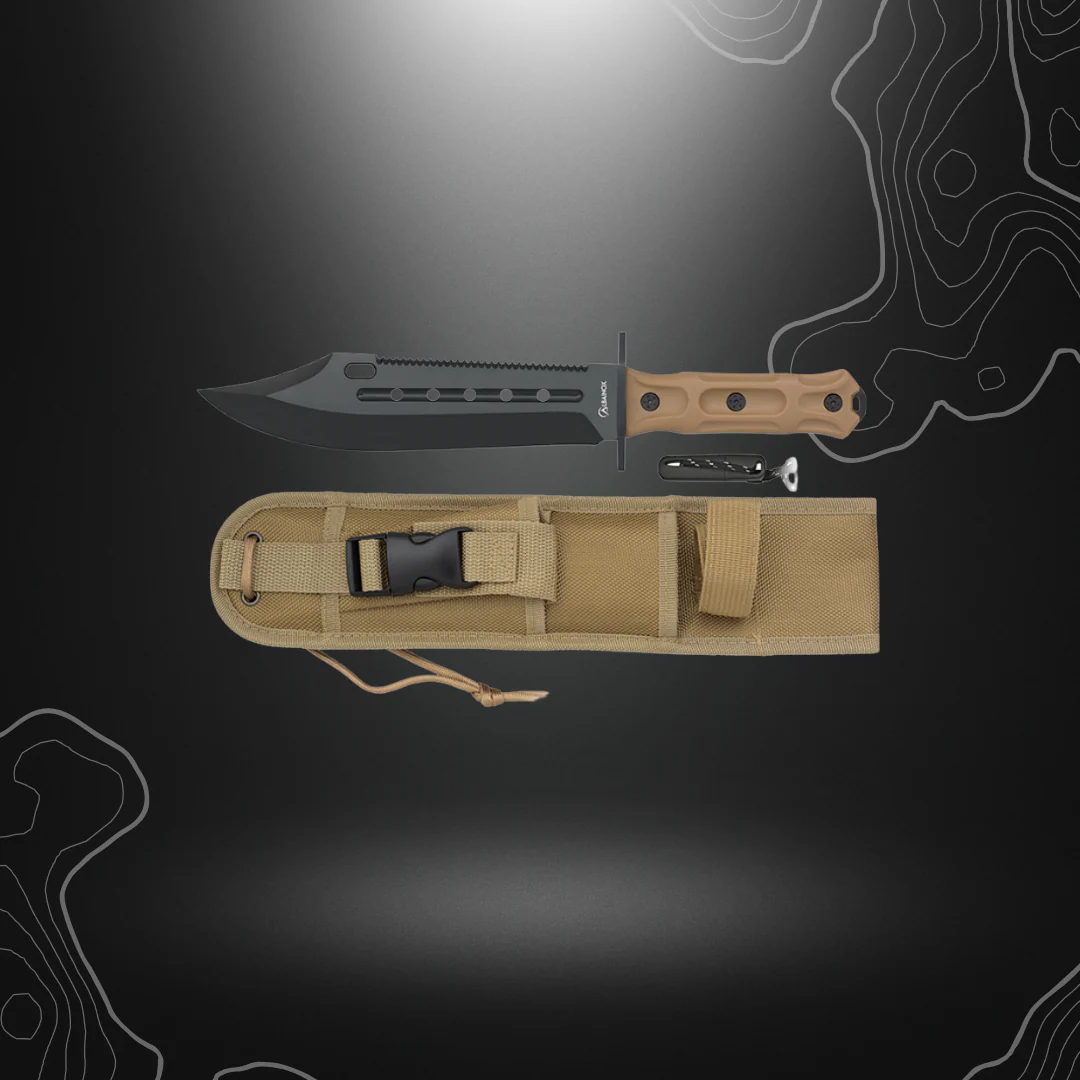 Au-delà de ses performances, le couteau Albainox 32803 se distingue également par son look élégant et moderne. Son manche coyote et sa lame noire lui confèrent un style unique, qui saura plaire aux amateurs de design.