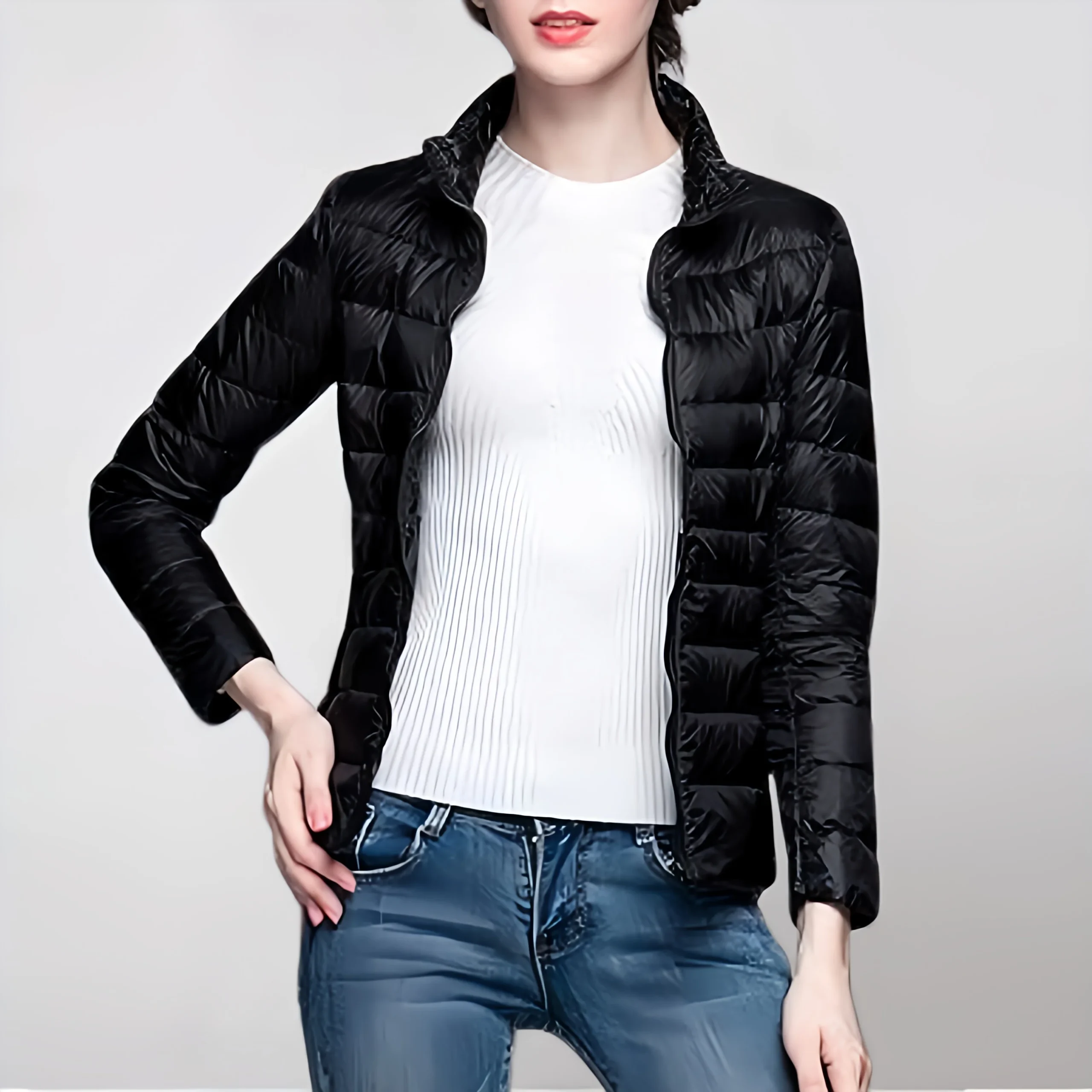 Doudoune Légère sans Capuche Noire pour Femme – Axia : Style Urbain et Confort