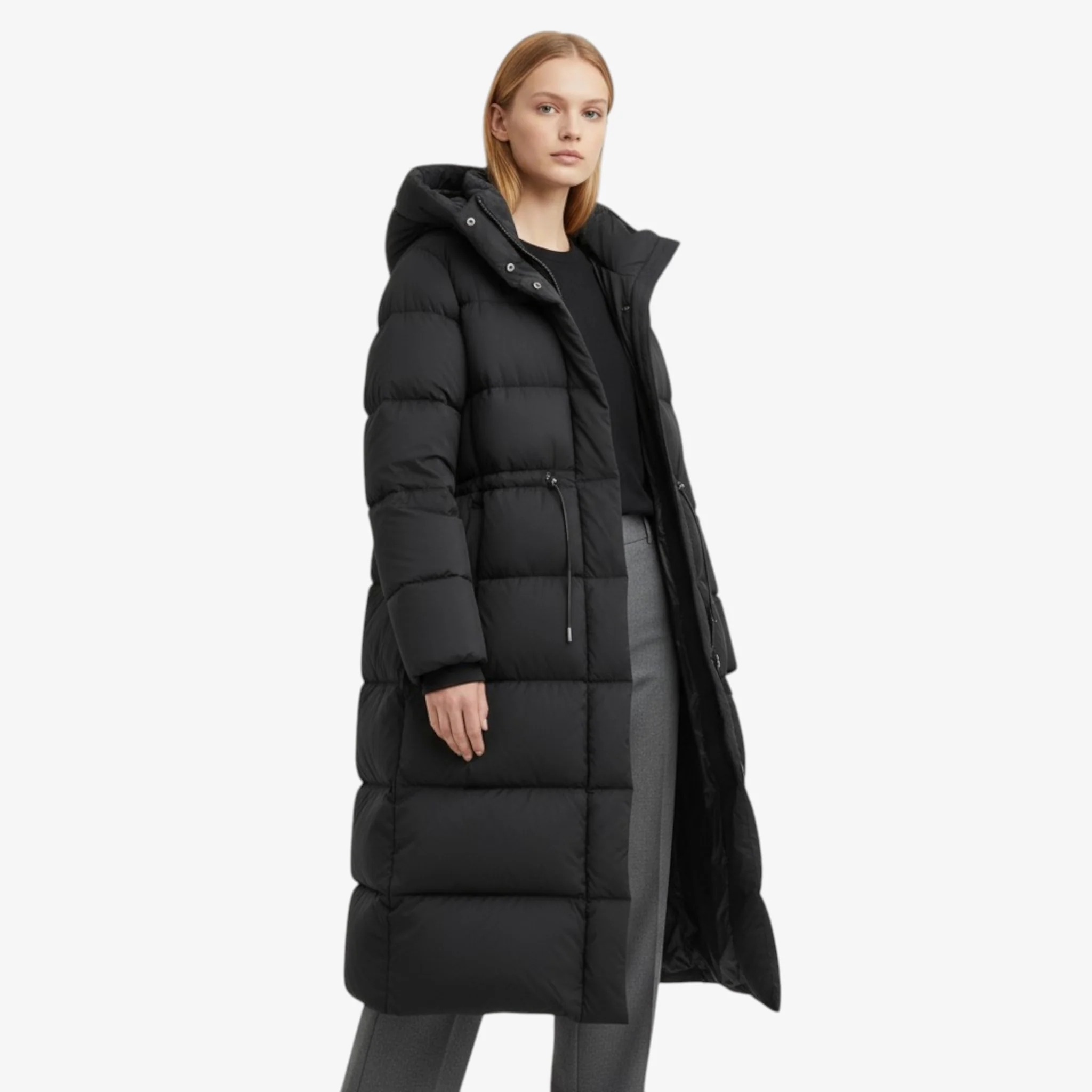 Faites de Doudoune Longue Noire Femme Avec Capuche Matelassé Épais – LAINIE votre allié contre le froid, sans compromis sur l’élégance.