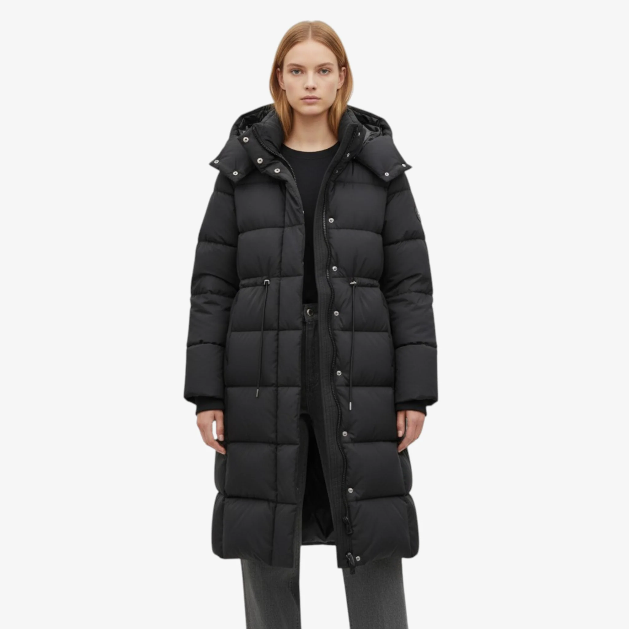 Doudoune Longue Noire Femme Avec Capuche Matelassé Épais – LAINIE – Doudoune pour Femme longue, Pensé pour le Grand Froid