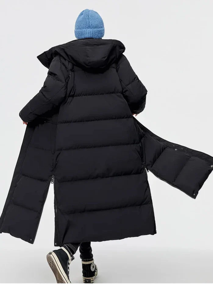 Protection Élégante : Doudoune Longue à Capuche pour Femme