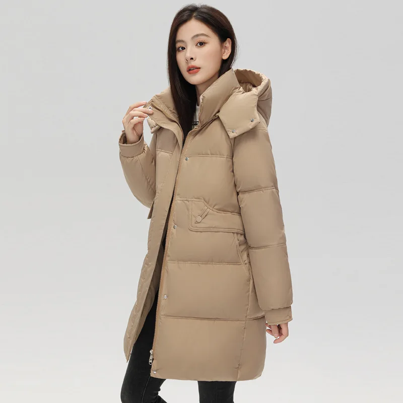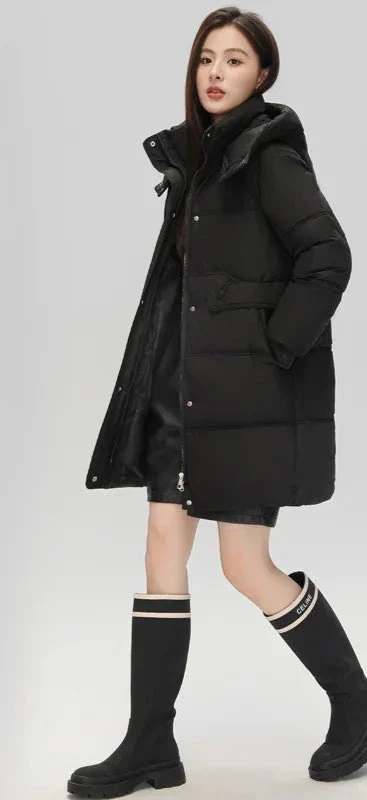 Confort Urbain : Doudoune Mi-Longue à Capuche pour Femme