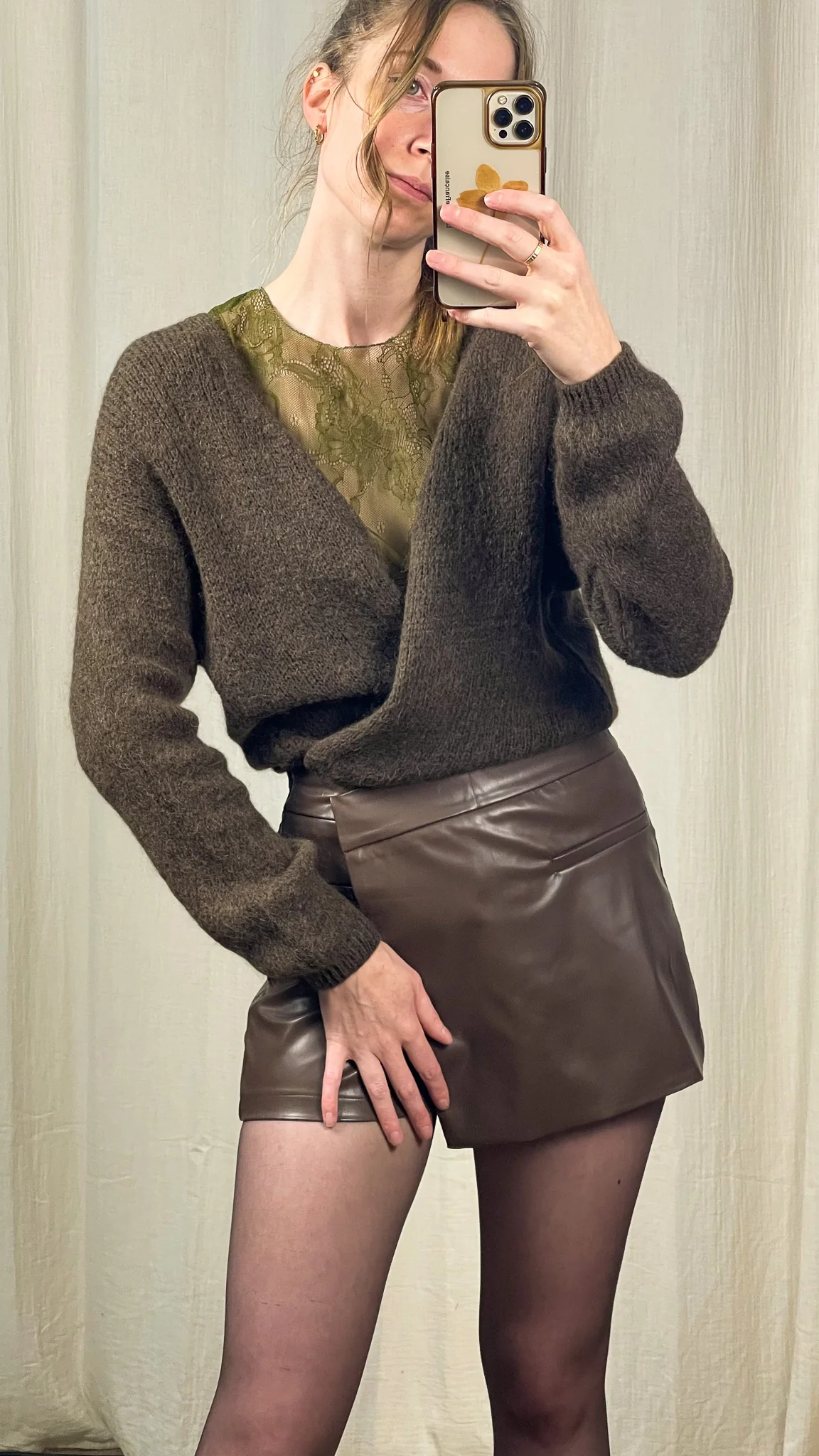 Superposez le Gilet Lola sur un top en dentelle pour jouer la transparence avec élégance, ou sur une chemise pour un look plus casual chic. Il s’accorde parfaitement à une jupe-short en simili ou à un jean taille haute pour un style équilibré entre confort et sophistication.
