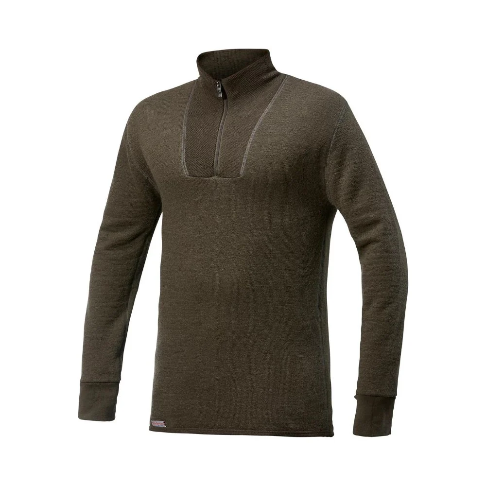 Le Tee-shirt manches longues avec zip Turtleneck 400 Pine Green de la marque Woolpower est composé de laine mérinos souple et confortable qui peut absorber jusqu’à 30 % de leur propre poids en humidité et se réchauffe même lorsqu’il est mouillé.