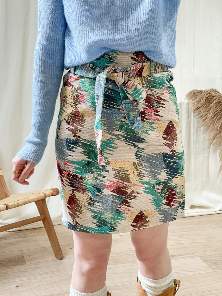 Jupe Khali – Jupe courte imprimée avec ceinture nouée