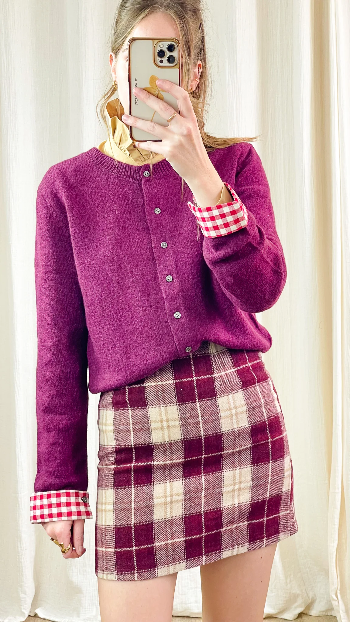 Associez la Jupe Tartan à un pull doux ou un gilet coloré pour un look automnal plein de caractère. Elle s’accorde aussi parfaitement avec des bottes hautes ou des baskets pour un style plus décontracté.