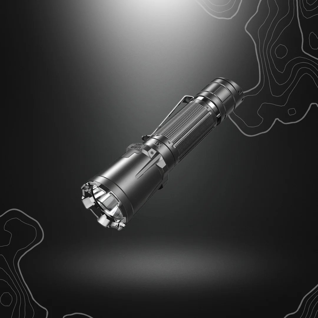 Livrée avec une batterie Lithium-Ion 18650 3.6V 3100 mAh, un cordon de chargement USB vers USB type-C, un clip ceinture, une dragonne, un joint d’étanchéité de rechange et un étui en nylon avec attache-mousqueton