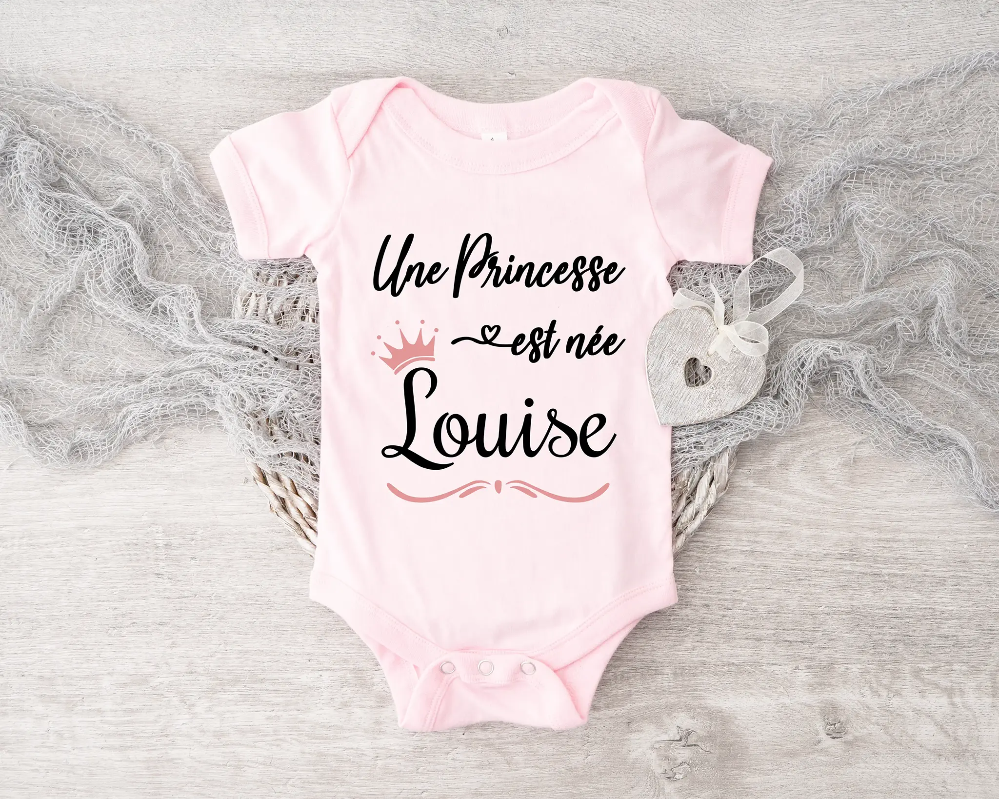 Lebonshirt Body Bébé Personnaliser 100% Coton BIO – Une Princesse Est Née – L020622S15