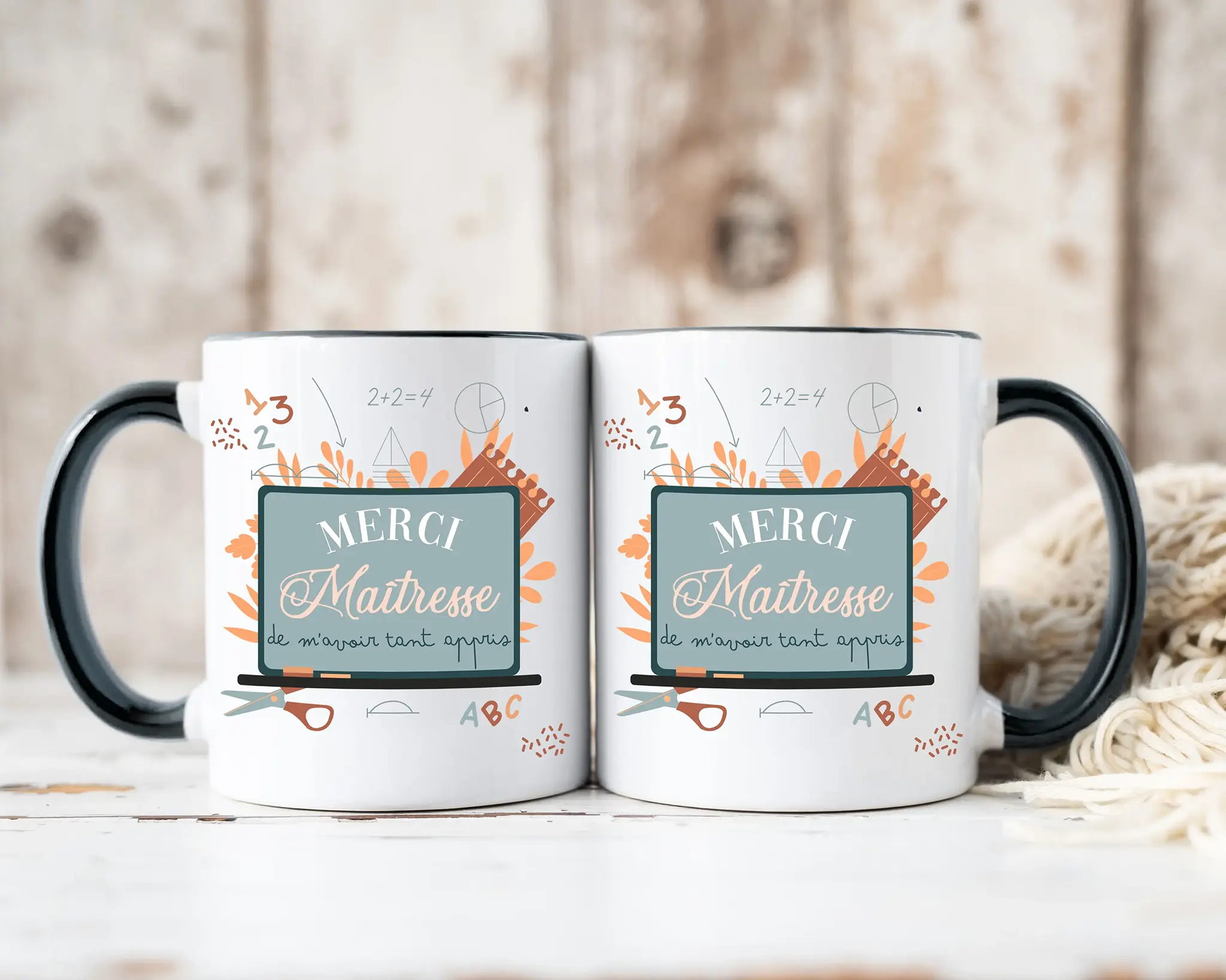 Que ce soit sur votre bureau ou celui de la maîtresse, ce mug est parfait ! Sa compatibilité avec le lave-vaisselle et le micro-ondes le rend aussi pratique que durable. C’est le témoignage de votre reconnaissance qui résiste à l’épreuve du temps.