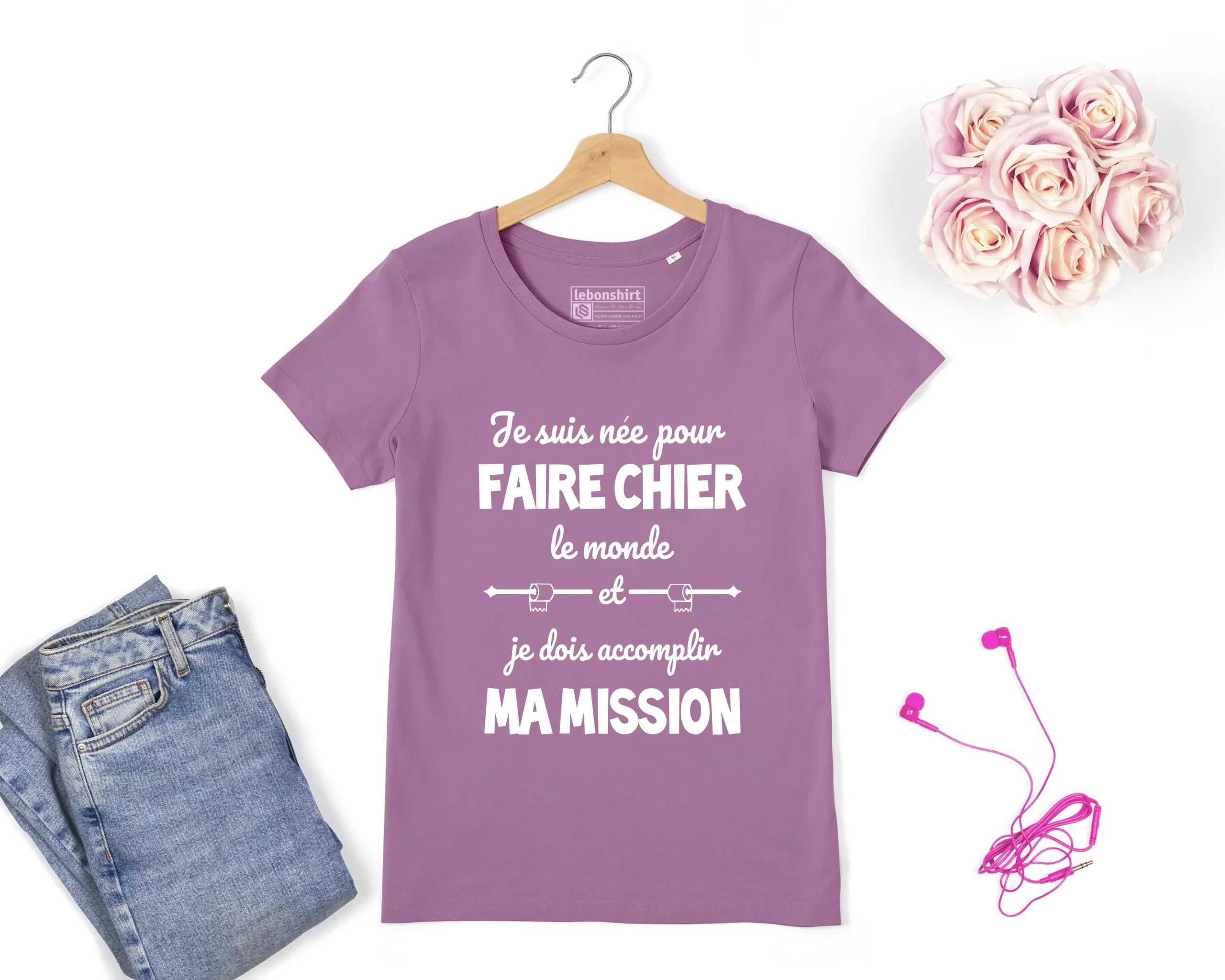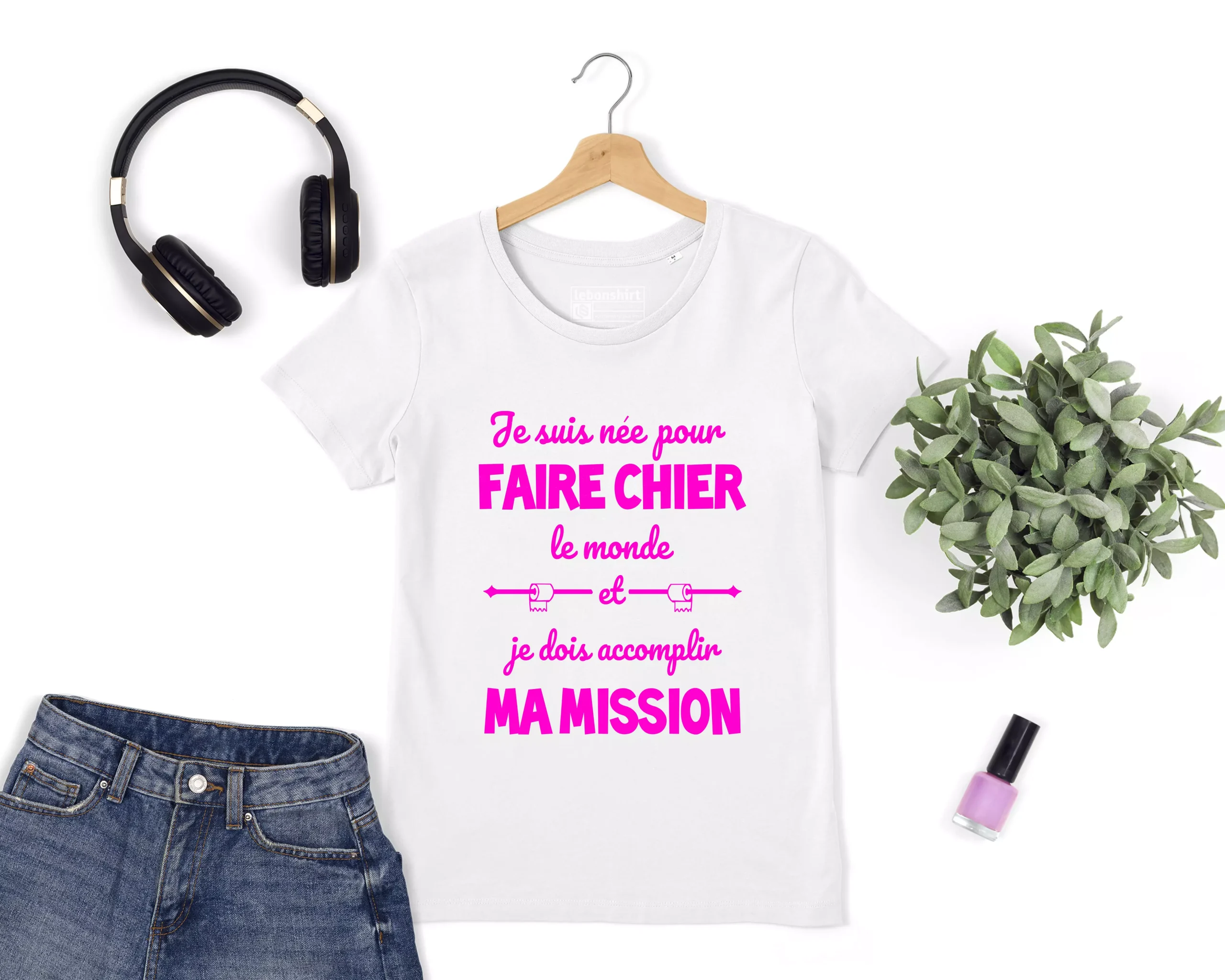 Alors, commandez notre T-shirt Premium Femme Coton Bio – Je Suis Née Pour Faire Chier Le Monde dès maintenant et affirmez votre personnalité avec humour !