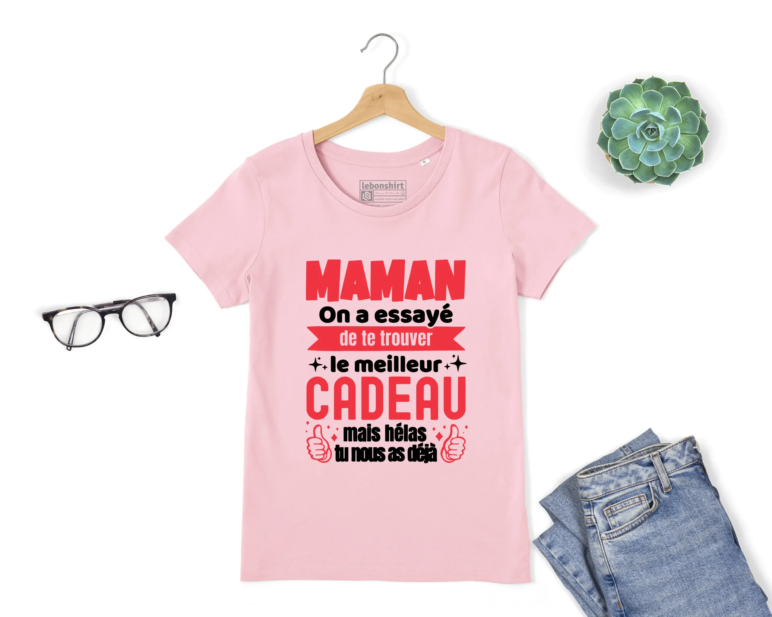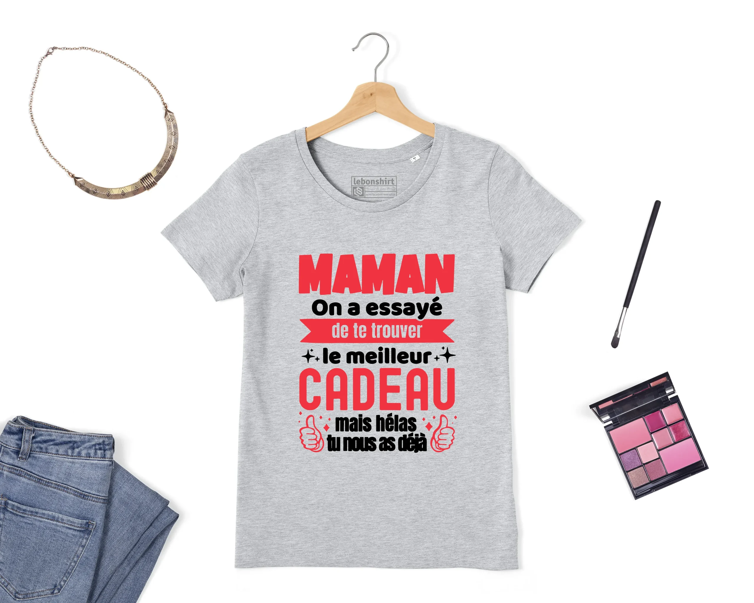 Vous cherchez le cadeau original maman parfait pour la fête des mères ou une idée cadeau maman unique pour n’importe quelle occasion ? Ne cherchez pas plus loin, Lebonshirt® a conçu un T-shirt Premium Femme en Coton Bio qui répondra à toutes vos attentes. Grâce à son message humoristique et touchant, ce T-shirt fera sourire votre maman et lui montrera combien elle compte pour vous.