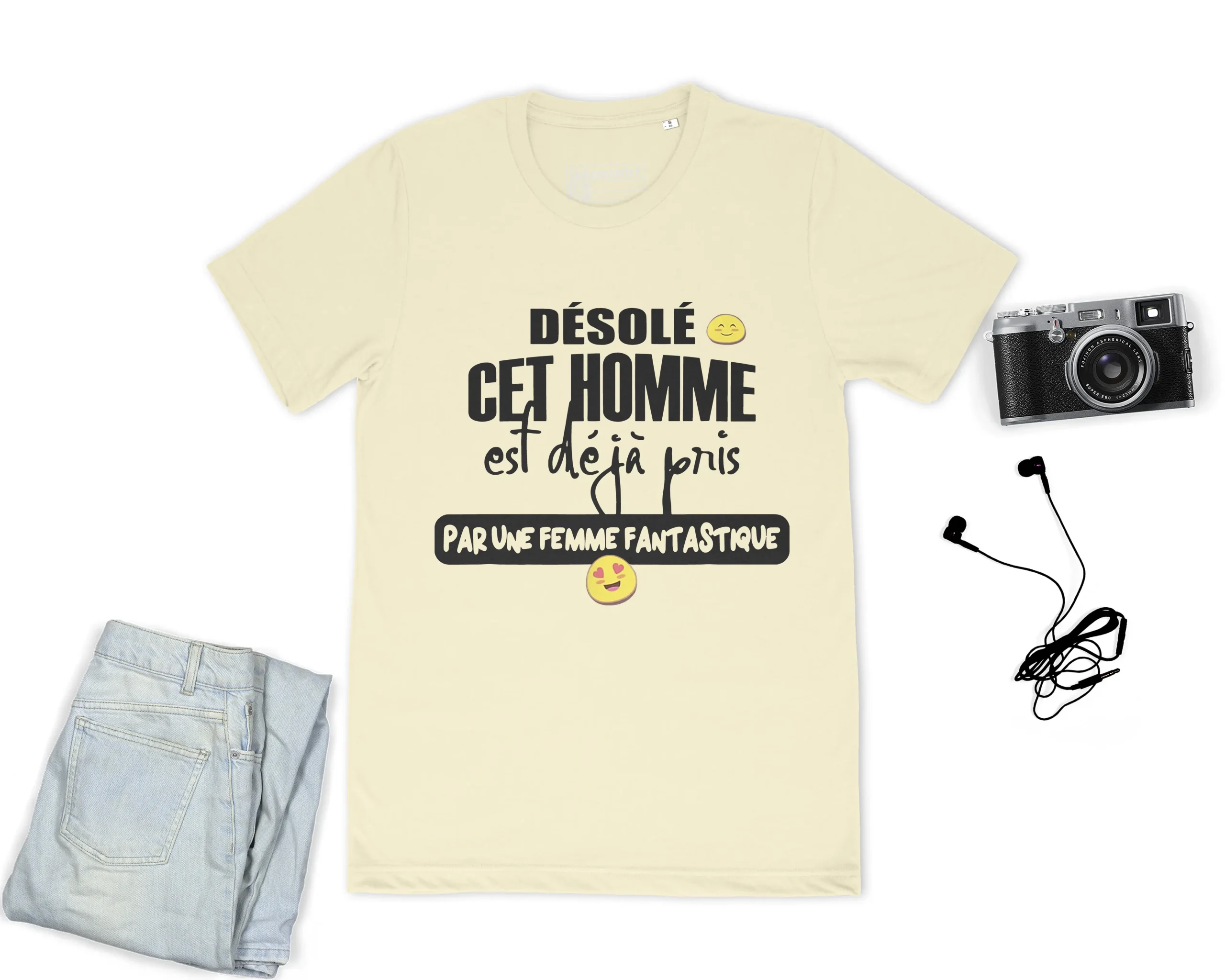 Lebonshirt® T-shirt Premium Homme Coton Bio – Désolé, Cet Homme Est Déjà Pris Par Une Femme Fantastique – L010122S03