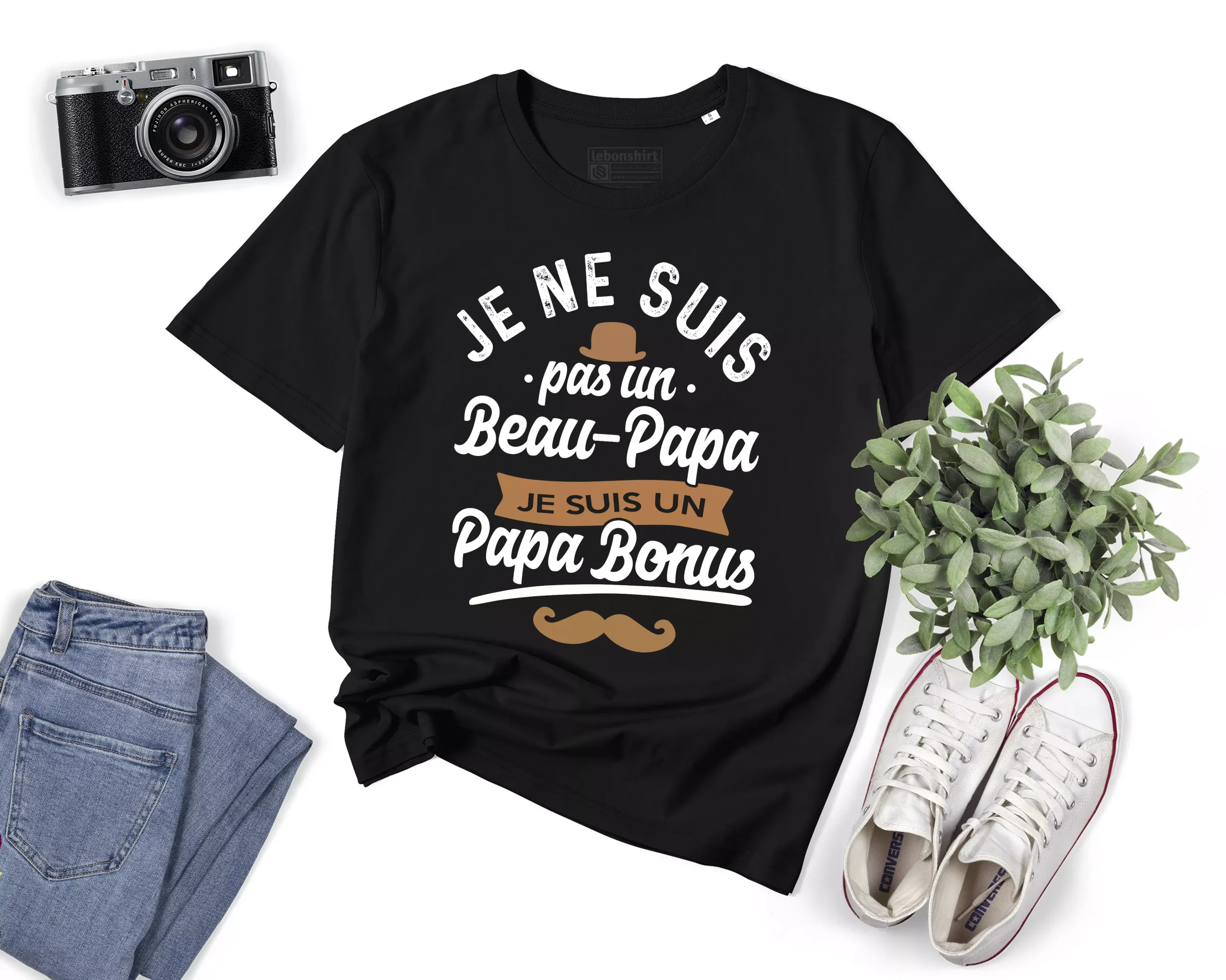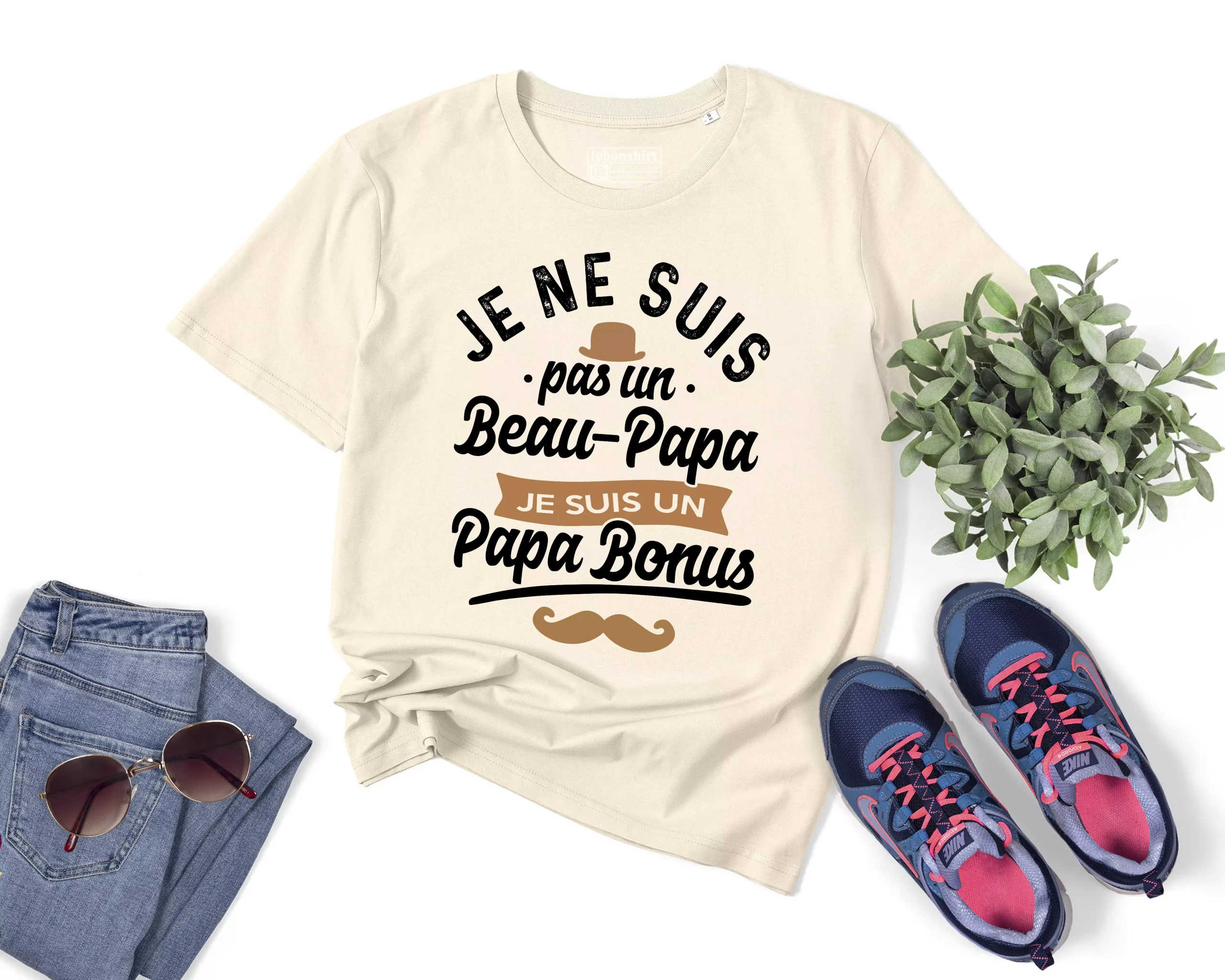 Lebonshirt® T-shirt Premium Homme Coton Bio – Je Ne Suis Pas Un Beau Papa, Je Suis Un Papa Bonus – Cadeau Humour Parfait Pour Beau Papa – L290422S14