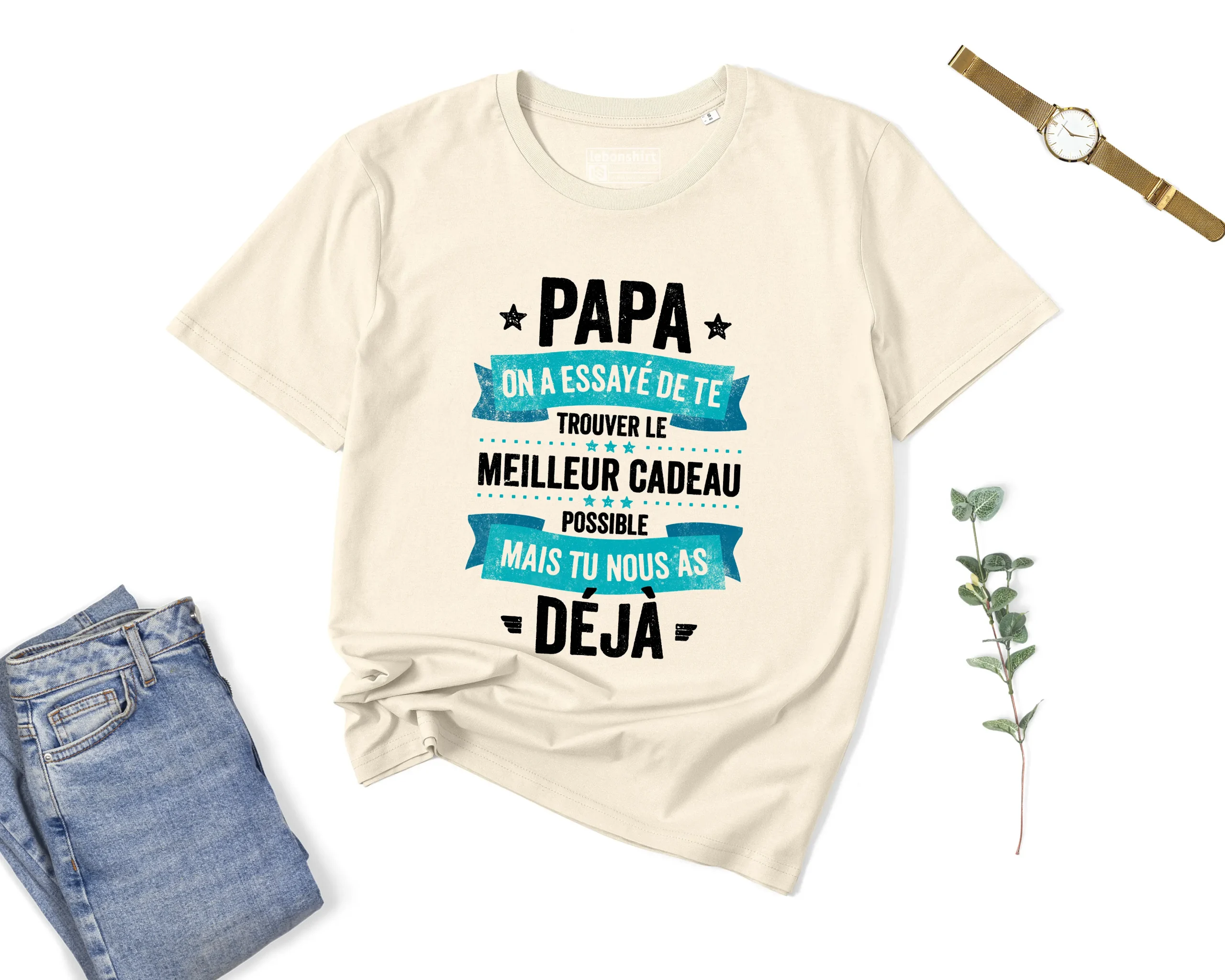 Lebonshirt® T-shirt Premium Homme Coton Bio – Papa, On A Essayé De Te Trouver Le Meilleur Cadeau Possible Mais Tu Nous As Déjà – L240222S01