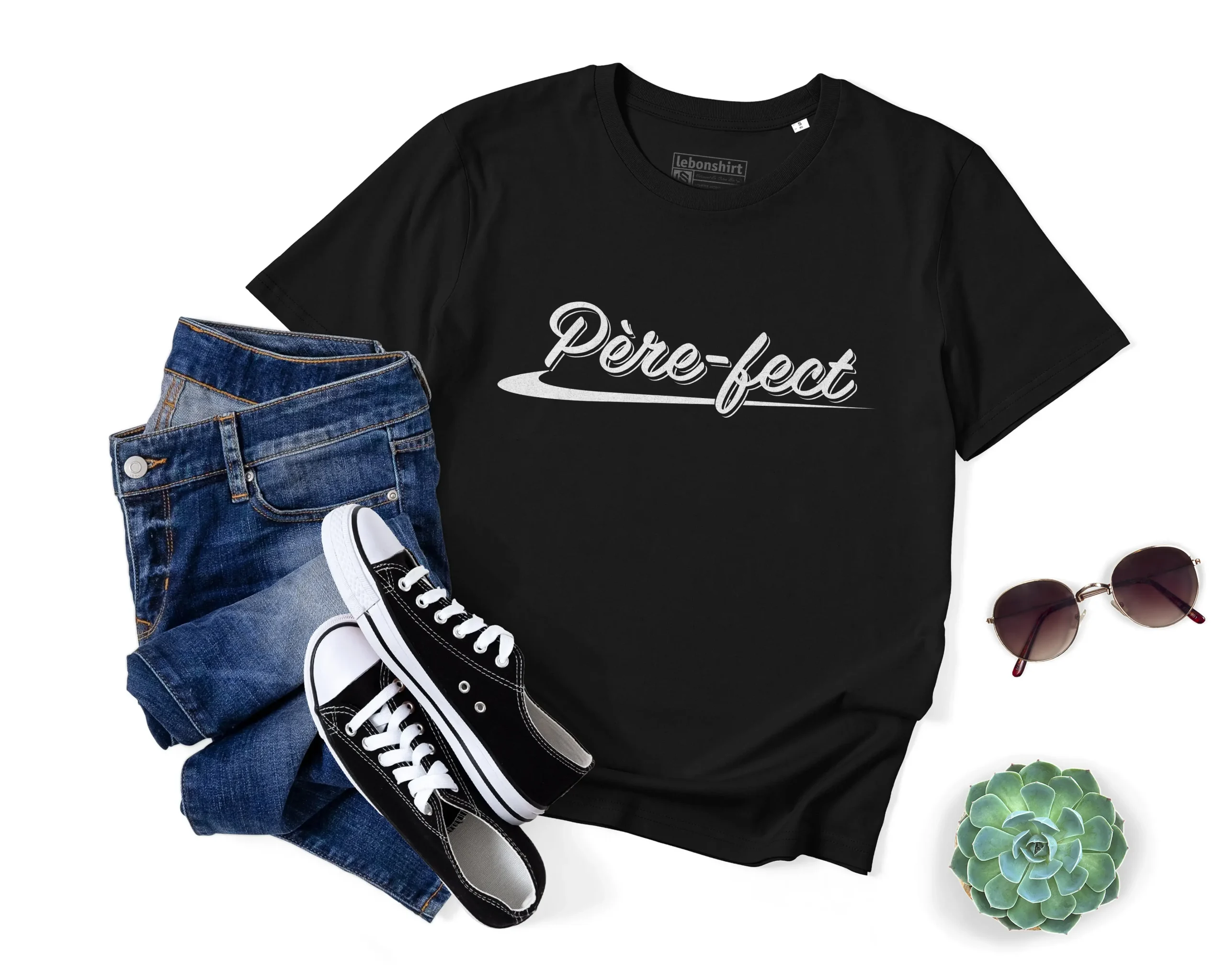 Le T-shirt Premium Homme Coton Bio de Lebonshirt est imprimé en France, avec un motif unique Pèrefect, Cadeau Original Papa Parfait, qui fera sourire votre papa à coup sûr. La livraison est rapide, avec une expédition sous 24 heures et une livraison dans les 3 à 4 jours suivants.