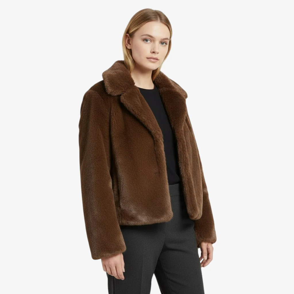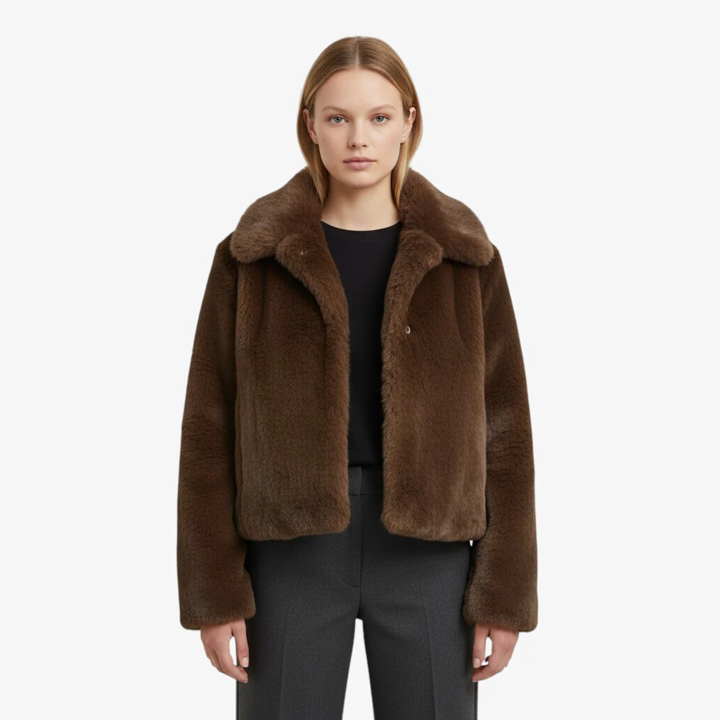 Manteau Court Fourrure Marron Femme – KENDY – Manteau pour Femme courte pour l’Hiver