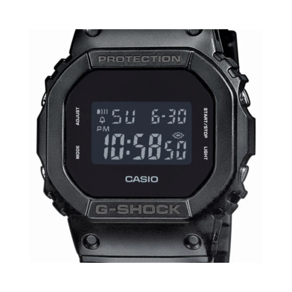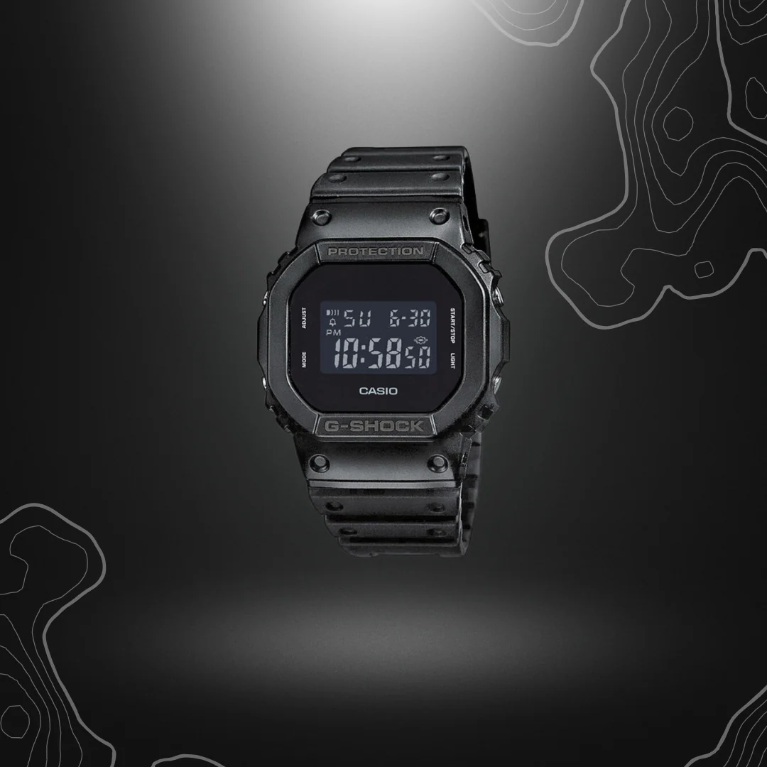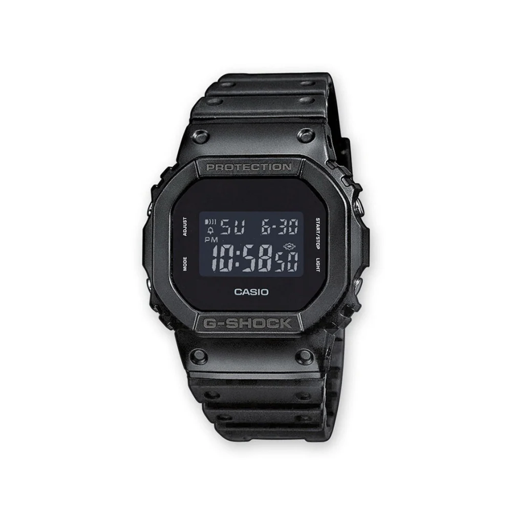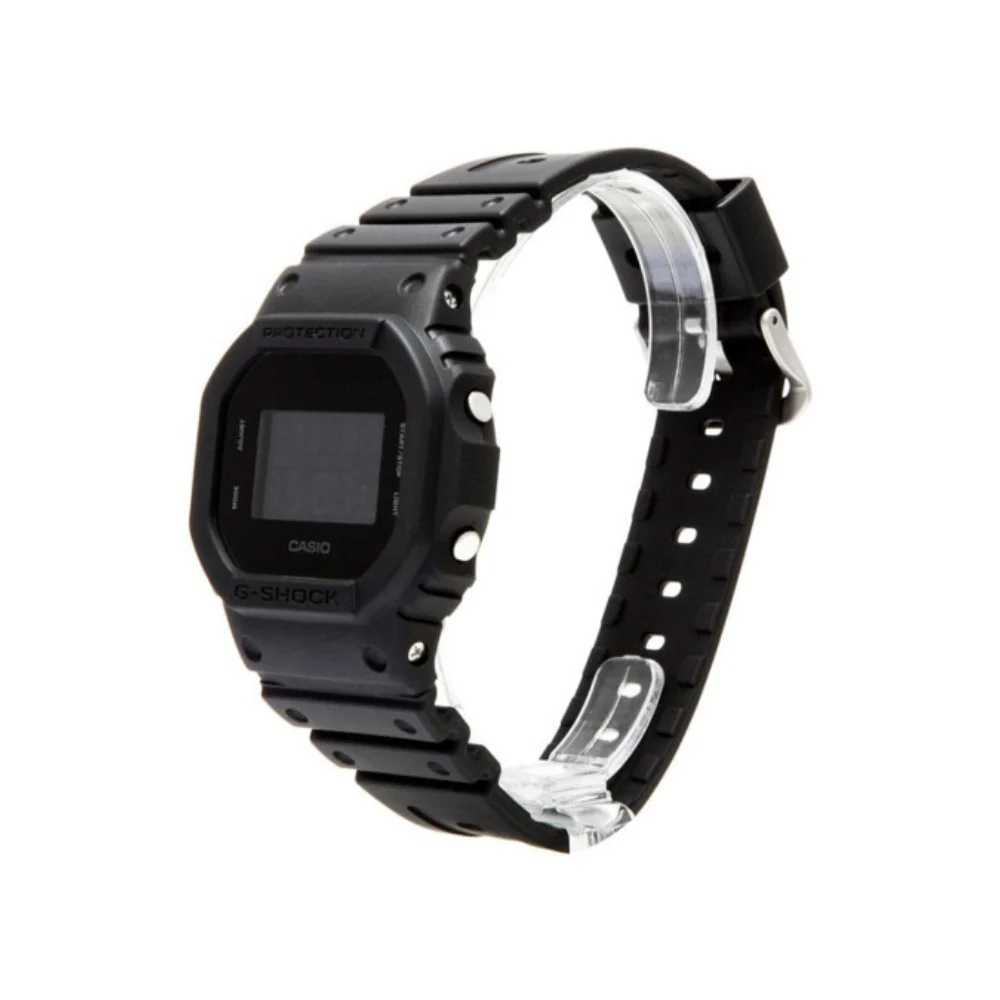 Classique et intemporelle, la montre-bracelet numérique G-Shock DW-5600 est robuste grâce à son cadran en verre minéral et ses boîtier et bracelet en résine, un matériau durable et souple. Cette montre entièrement noire revendique la sobriété de son design. La finition mate du boîtier et du bracelet renforce le jeu de couleurs monochrome et met en valeur les lignes de la montre.