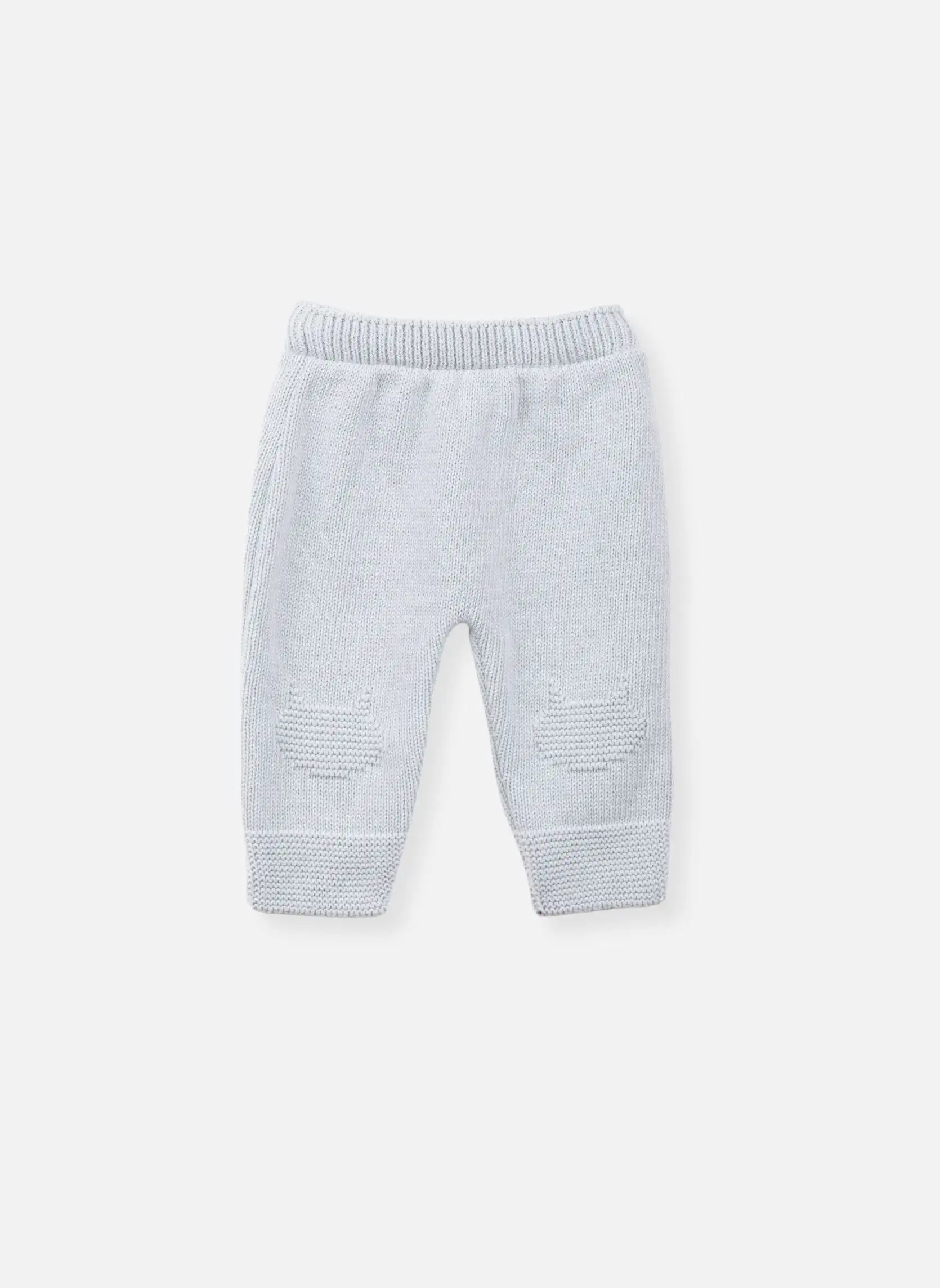 Un pantalon tricoté en coton, souple et tout doux pour le confort de votre bébé. Ce modèle sans pied présente de jolis motifs de chats au niveau des genoux, réalisés en point mousse et jersey, pour une touche ludique et pleine de tendresse.