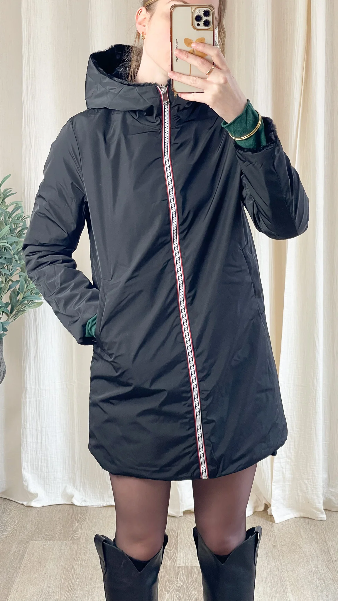 Parka réversible 2 en 1 : côté fausse fourrure + côté matelassé