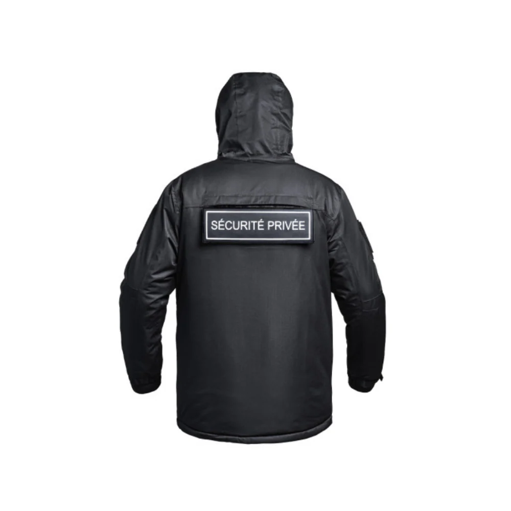 – 2 patchs amovibles « SÉCURITÉ PRIVÉE » blanc rétro-réfléchissant (dos = L. 30 x H. 9 cm / poitrine = L. 13 x H. 5 cm) inclus