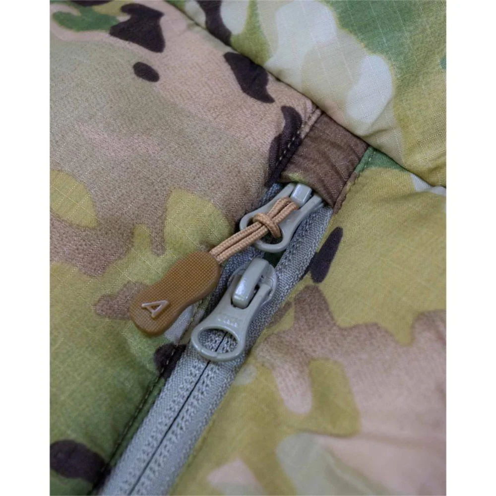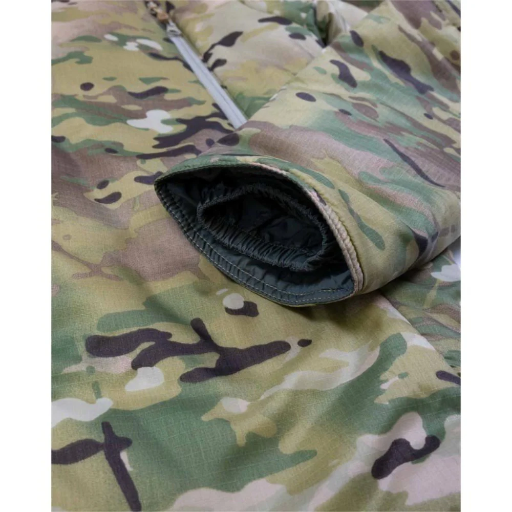 Les deux poches avant comportent des points de réglage internes et discrets qui permettent de les utiliser aisément sans risquer de gêner le dégagement de l’arme. La capuche spacieuse peut être entièrement réglée en trois points et elle dispose d’un bord câblé pour permettre un réglage efficace de la capuche et éviter toute perte de vision périphérique. La veste peut être rangée dans sa propre poche.