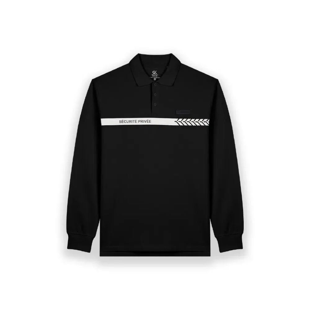 En effet, ce polo à manches longues, de couleur noire, est doté d’une bande grise et d’un marquage “SÉCURITÉ PRIVÉE” sur la poitrine. Par ailleurs, un logo rétroréfléchissant a été ajouté au dos pour une visibilité accrue.