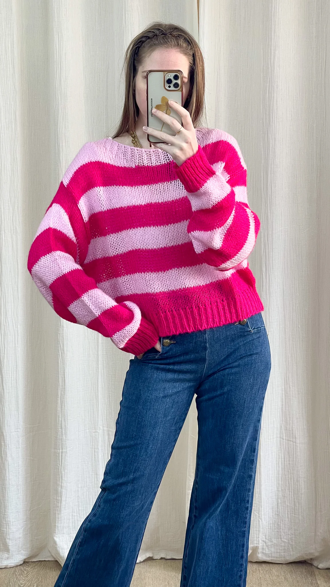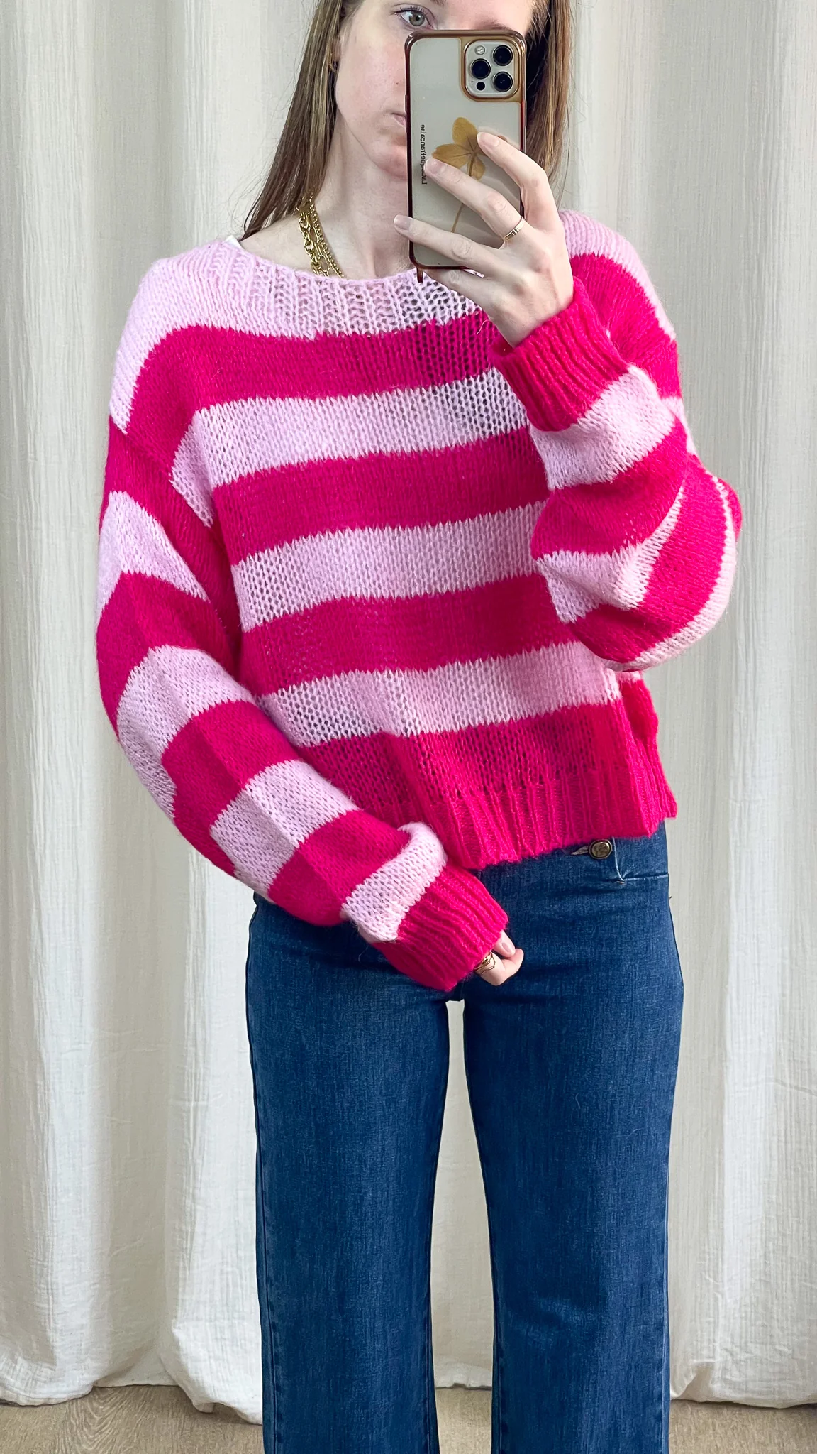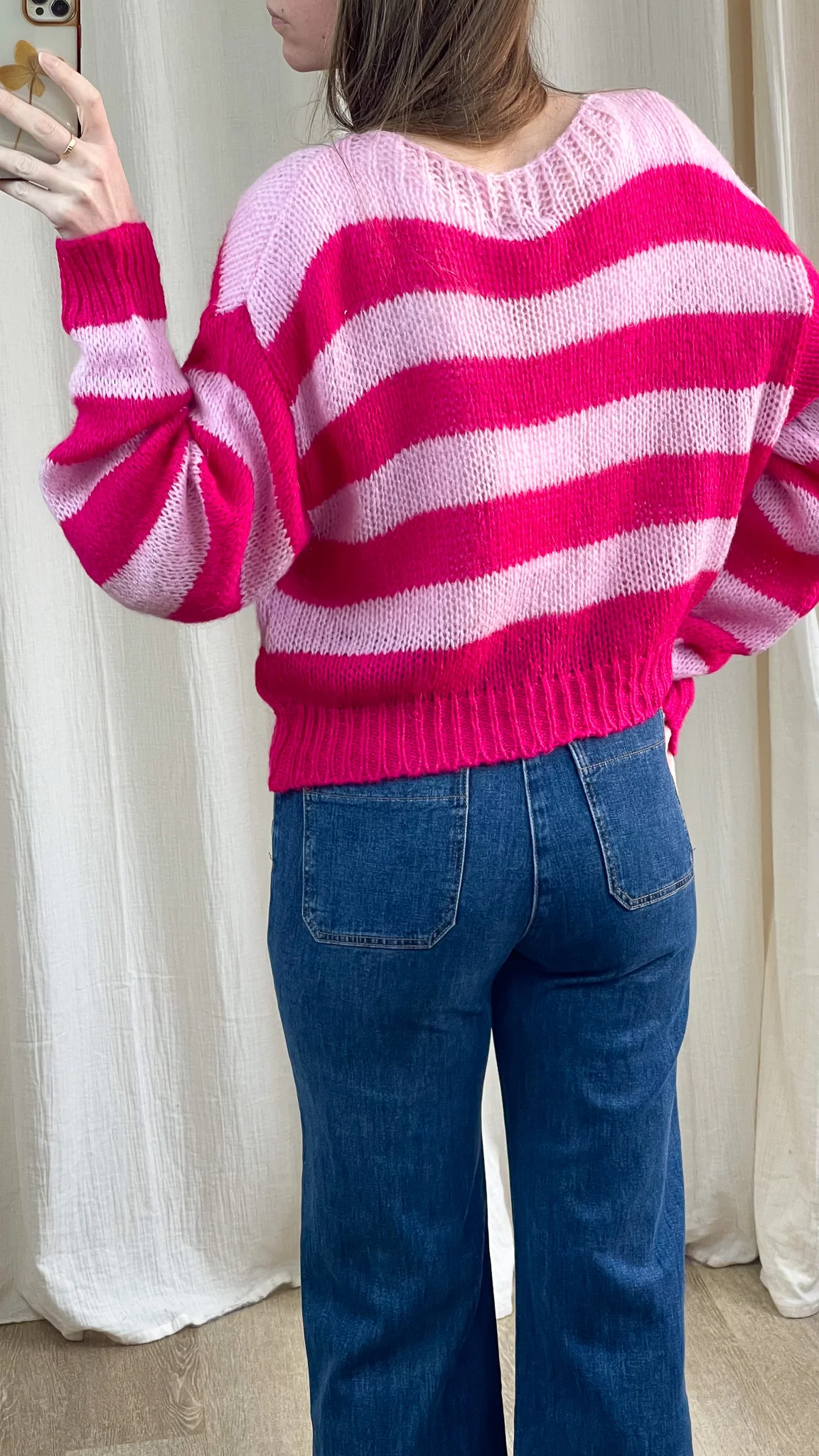 Pull Jeannine – Pull à rayures rose et fuchsia