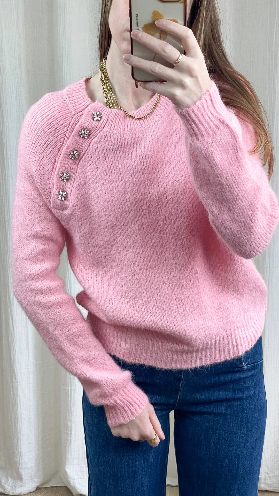 Le Pull Laurie apporte une touche lumineuse et élégante à votre dressing. Sa maille douce et confortable est sublimée par de jolis boutons strass placés sur l’épaule, qui ajoutent un détail chic sans en faire trop. Facile à porter au quotidien, il combine confort et féminité pour des looks soignés et modernes.