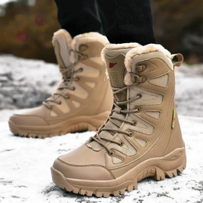 Des chaussures type rangers militaire fourrées, idéales pour l’hiver. Des bottines de soldat qui vous accompagneront dans vos activités même par de très basses températures.