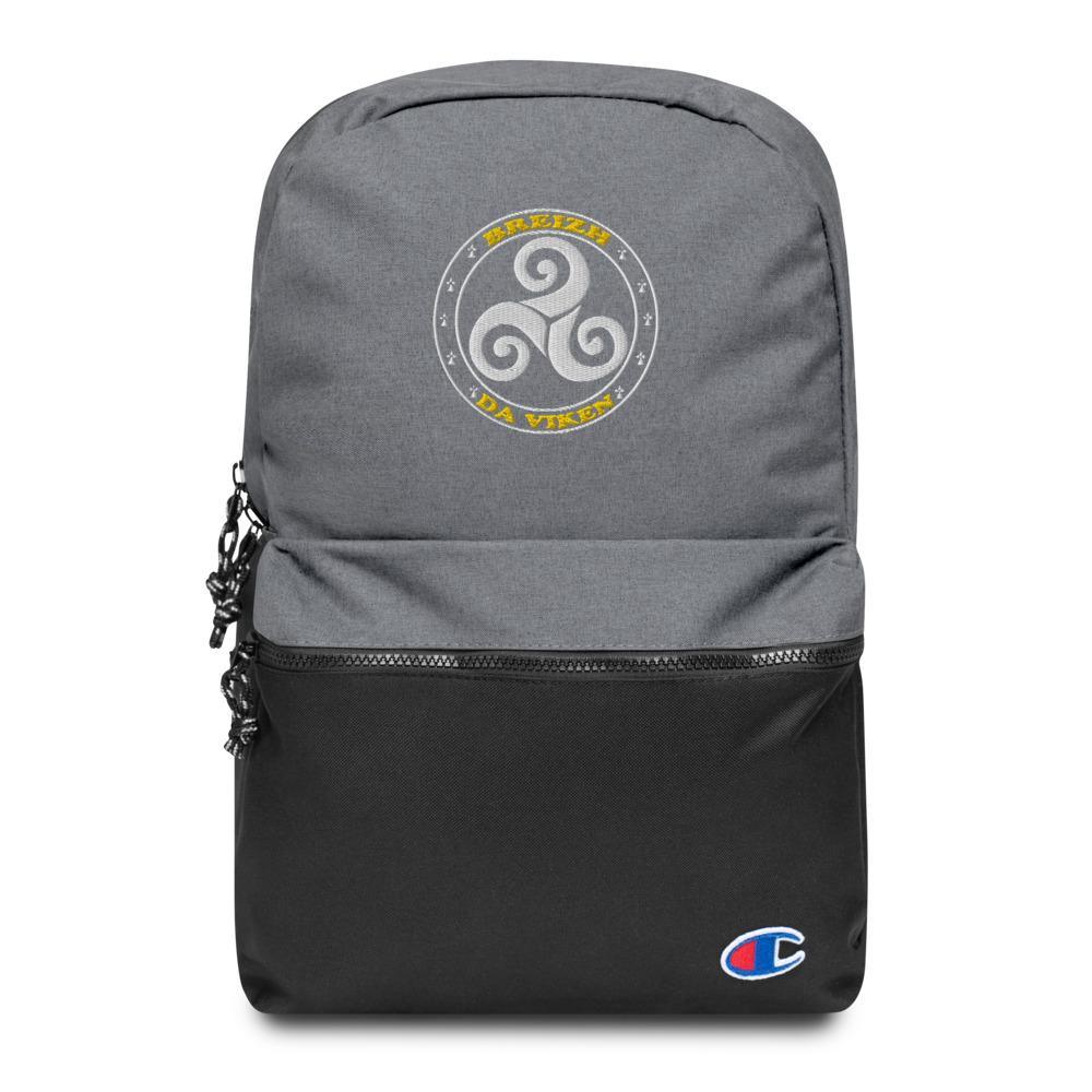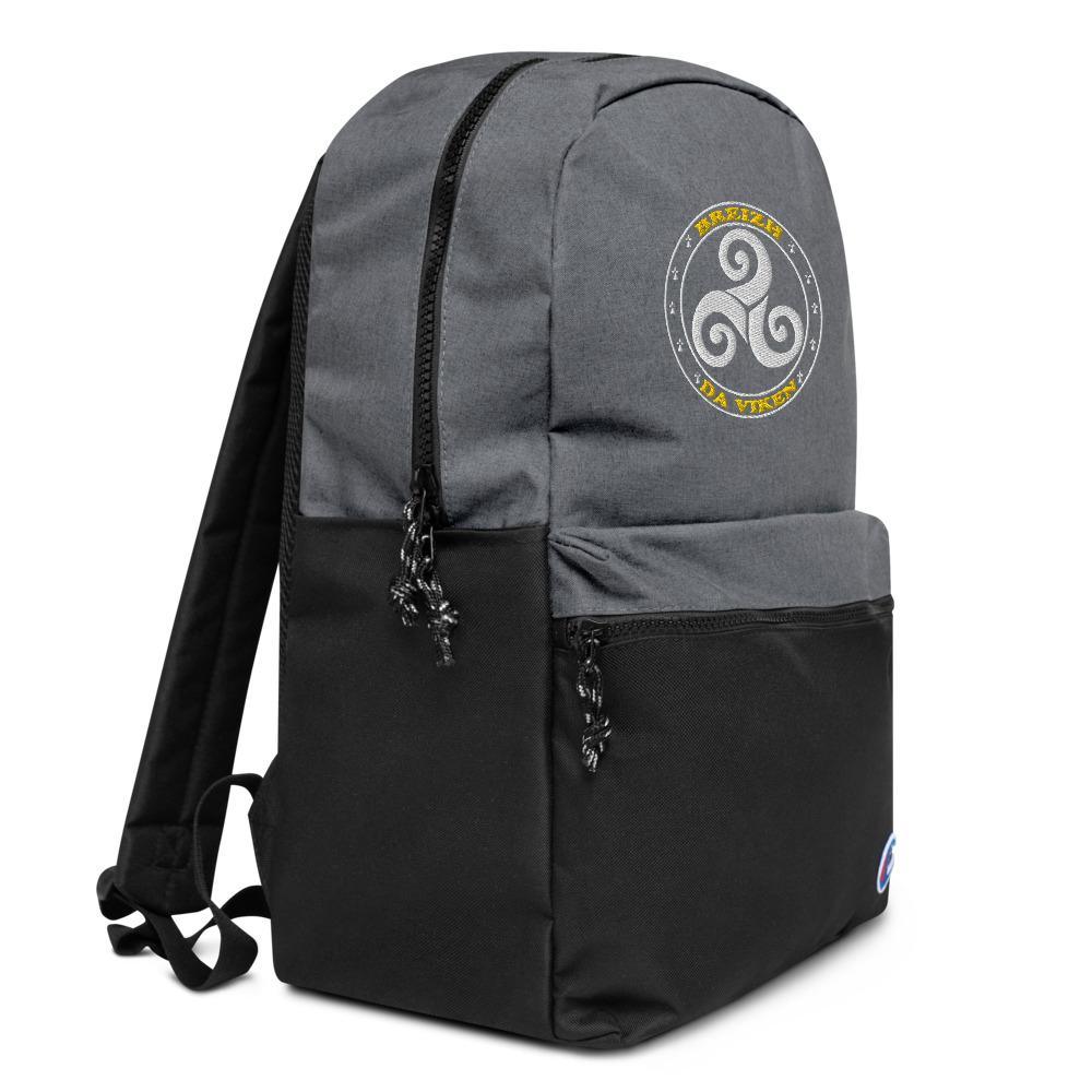 Ce petit sac à dos Champion est brodé en couleurs avec un Triskell et la phrase Breizh Da Viken (Bretagne pour toujours)