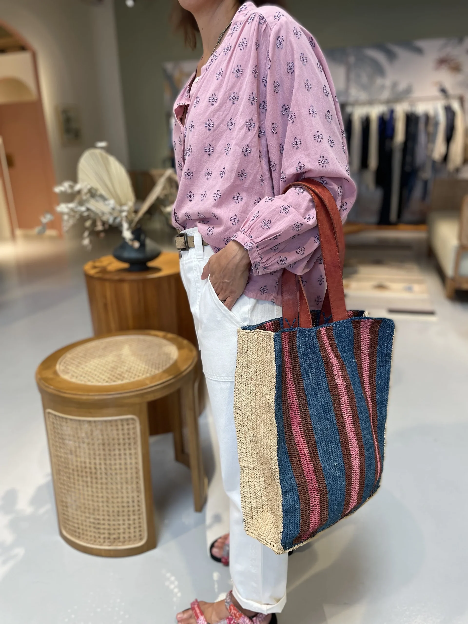 Disponible en trois déclinairons coloris, le sac CAIRO se porte avec aisance à l’épaule grâce à ses anses en cuir. Apportez une touche de couleur à votre tenue cet été!