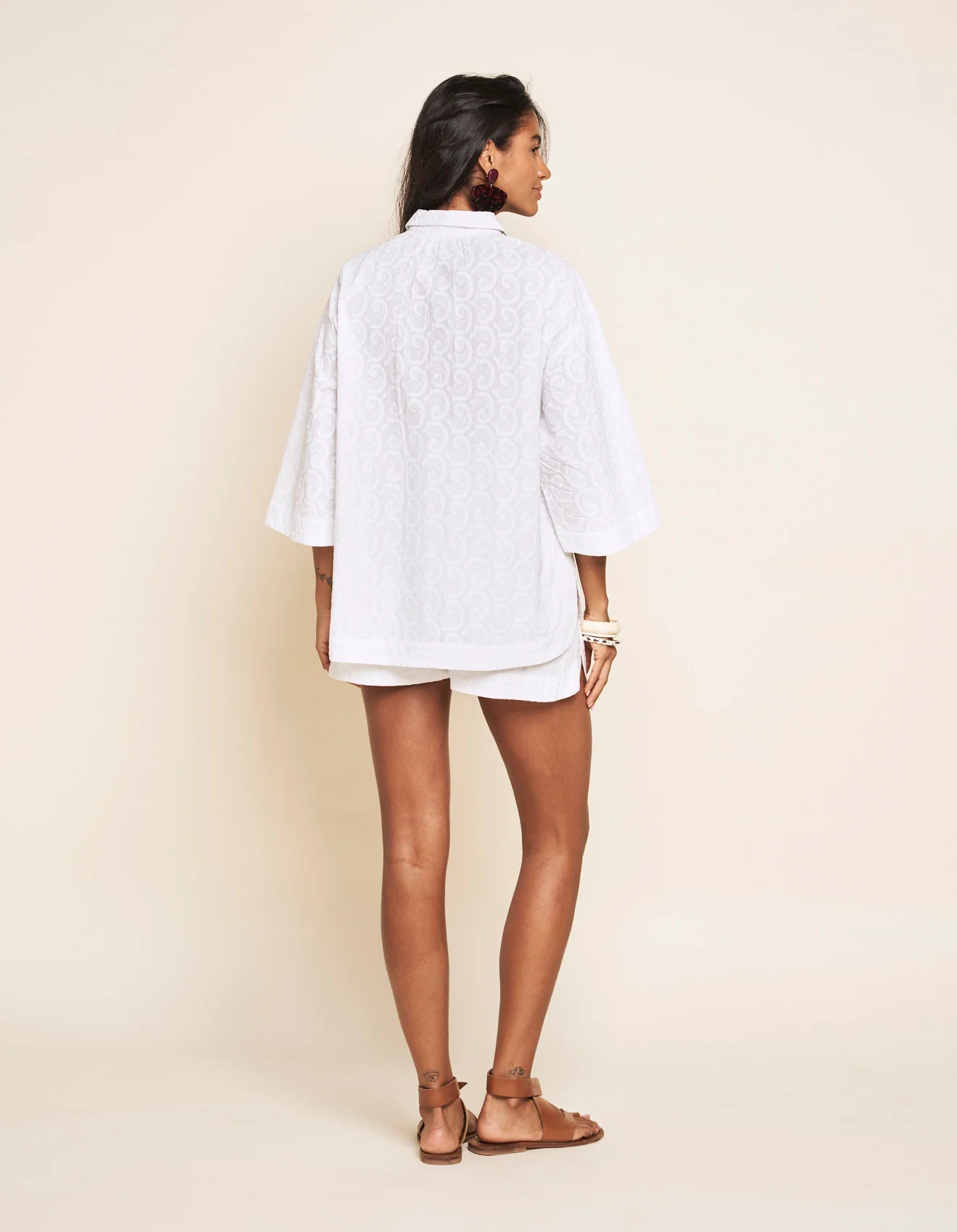 Une coupe plus contemporaine en broderie anglaise qui apporte un style casual qu’on adore. A porter en sur-chemise ouverte ou fermée sur notre short PABRIZIO.