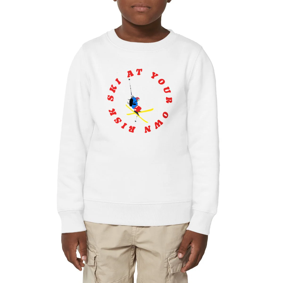 Sweatshirt Enfant – Garçon – Épais – Coton BIO – Ski at your own risk