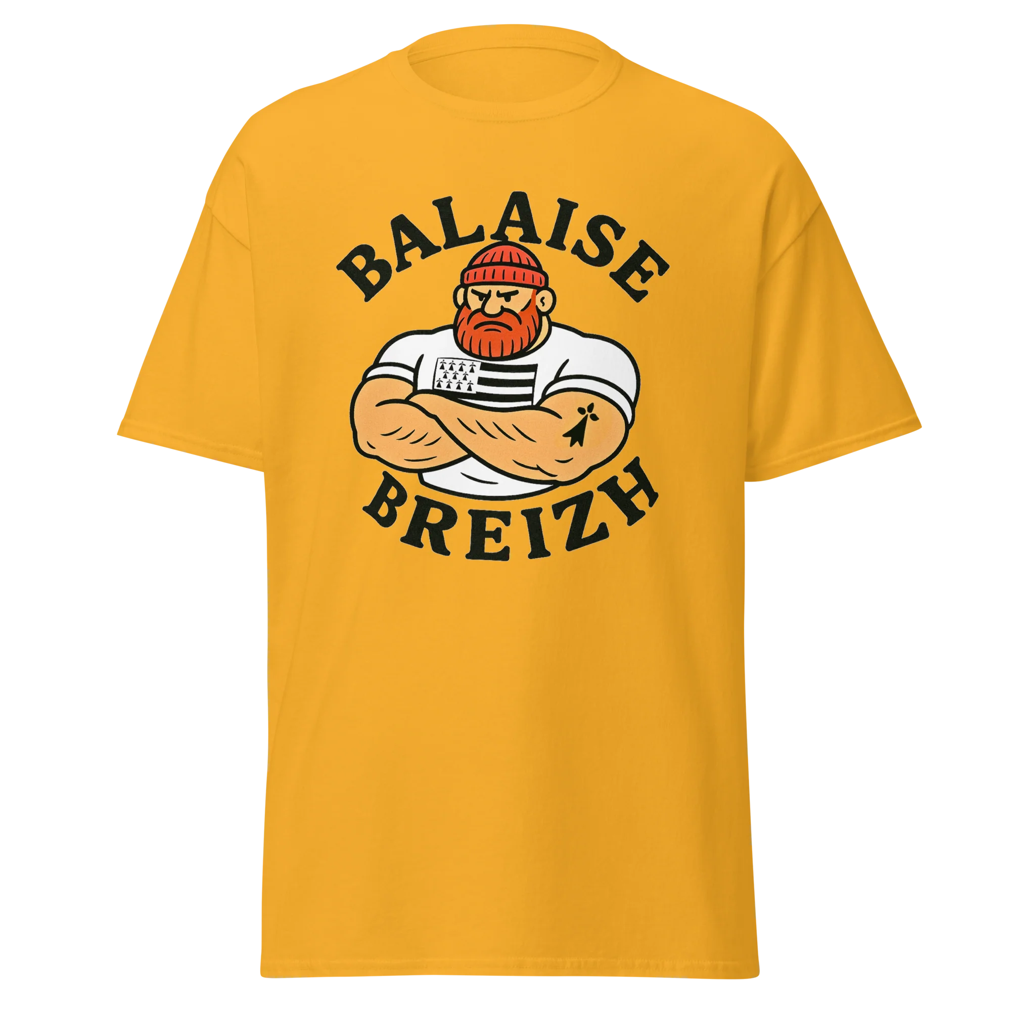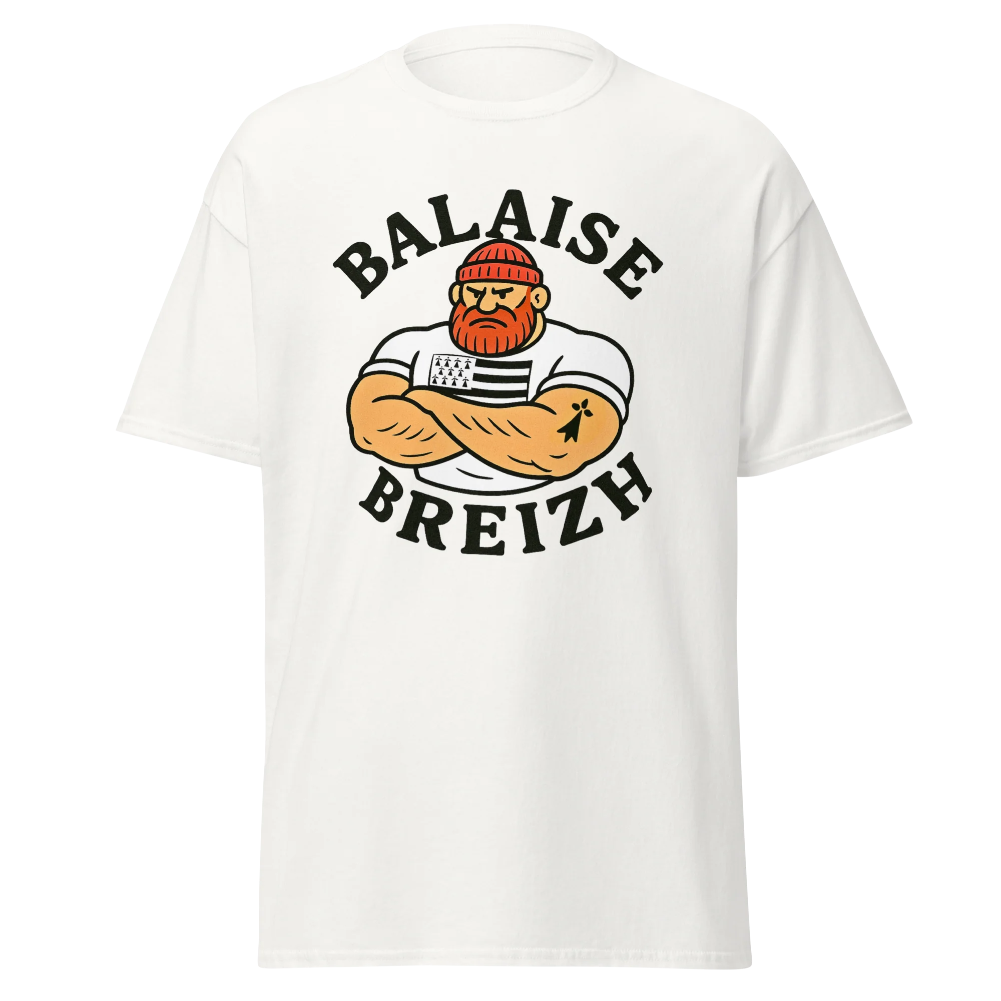 Soyez le mastodonte des festoù-noz et le roi des crêperies ! Enfilez ce T-shirt “Balaise Breizh” et dégainez votre plus beau Dañs Breizh. Conçu en coton peigné ultra-confort (170 g/m²), il vous suit partout – du port de Douarnenez aux Abers sauvages – sans jamais faiblir. Avec son visuel “Balaise Breizh” arborant le Gwen ha Du et un guerrier baraqué, affichez votre fierté bretonne en toute élégance.