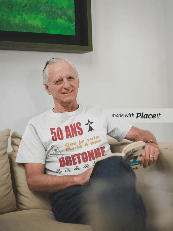 T-Shirt Breton Anniversaire de Mariage 5O ANS Rouge & Noir. 50 ans que je suis marié avec une Bretonne.