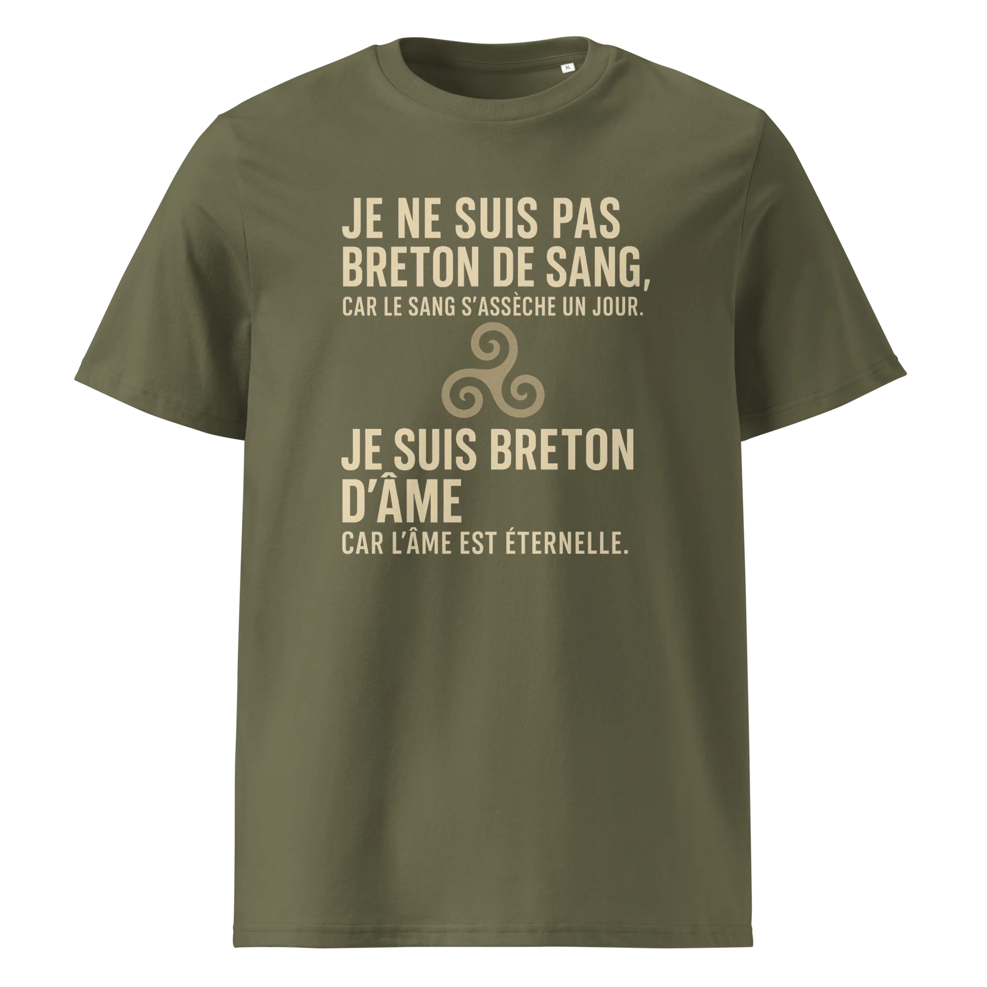 - Motif : texte « Breton d’Âme » + triskell discret (ton sable/beige clair)