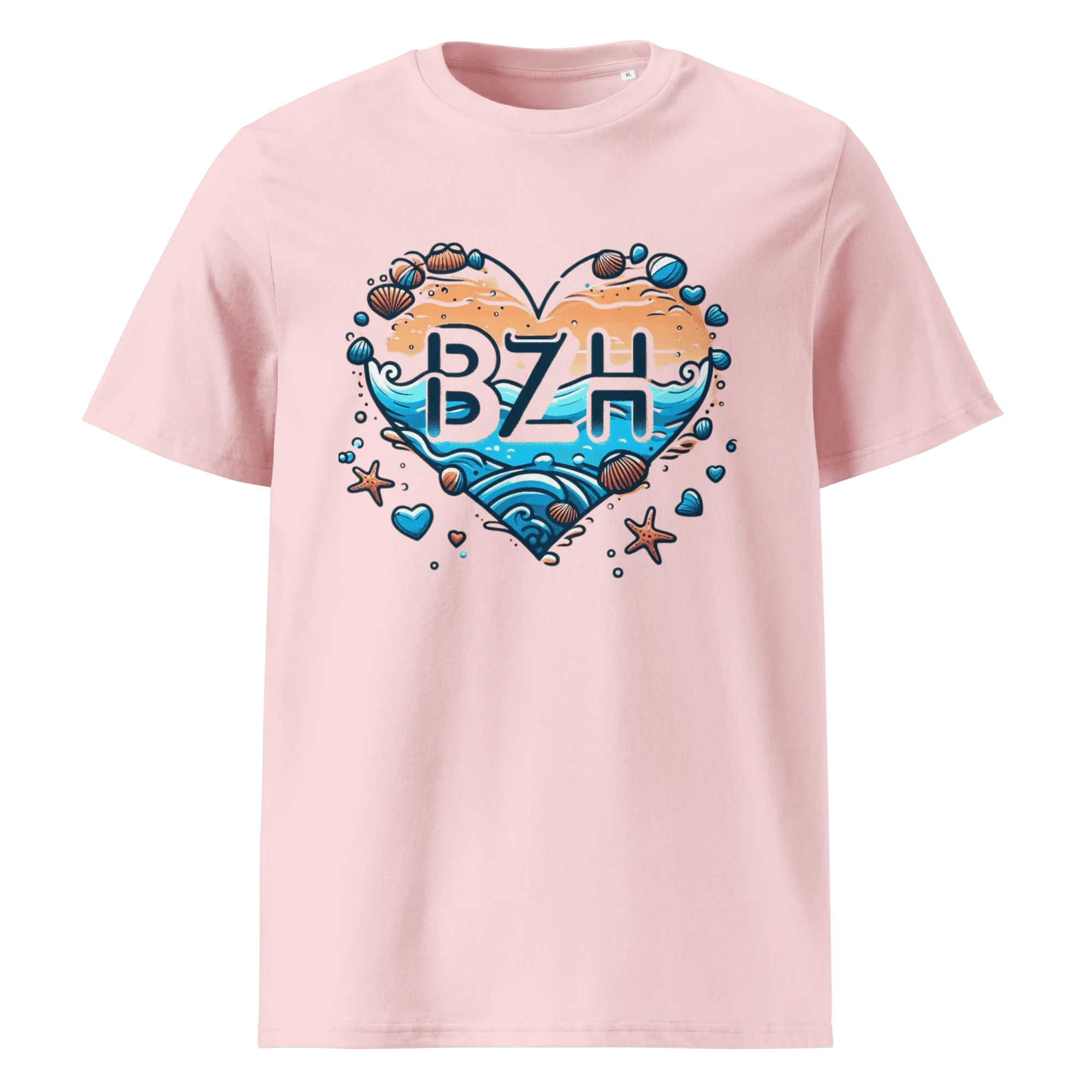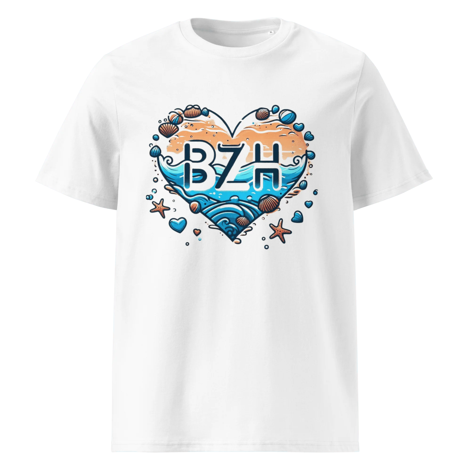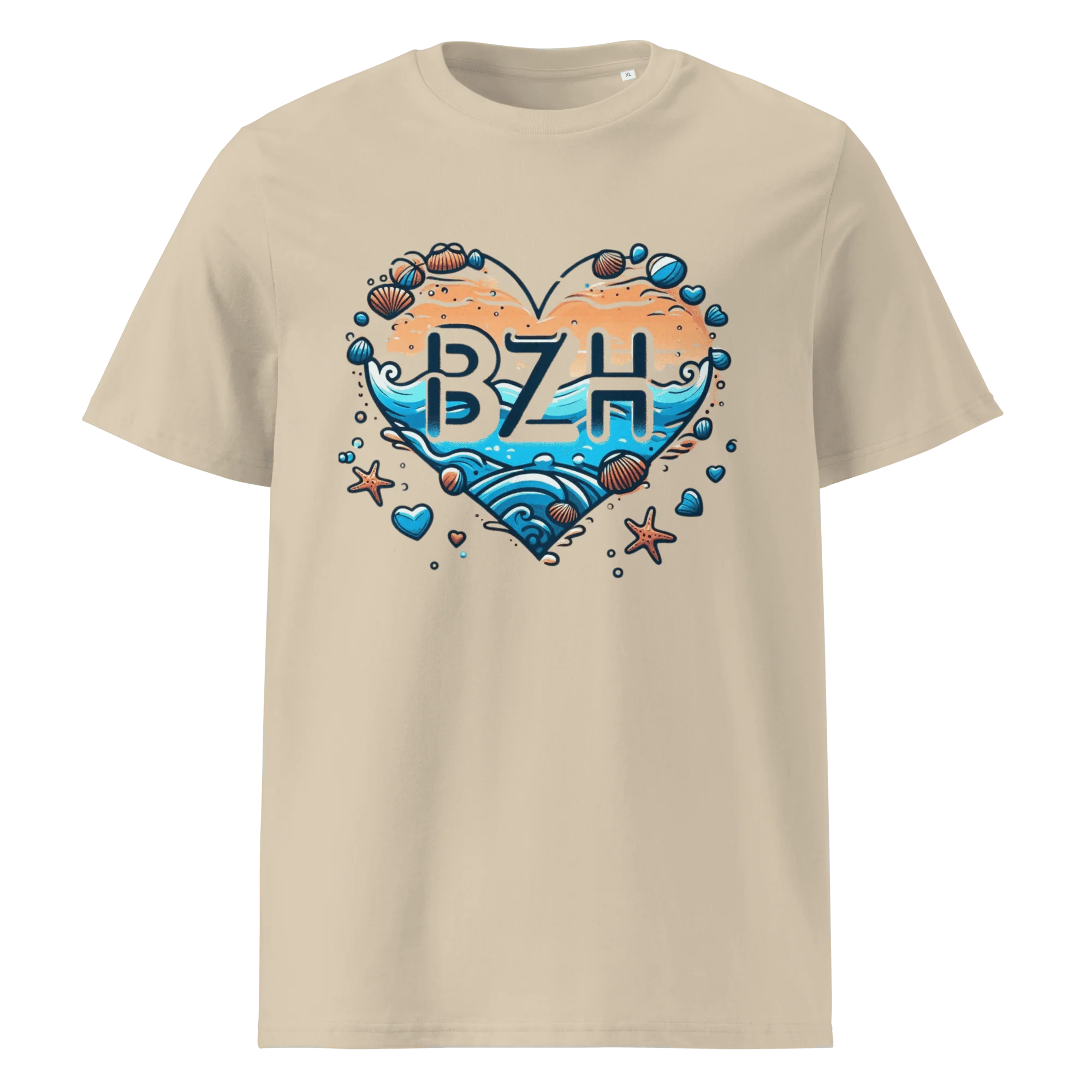 Évadez-vous en Bretagne avec notre t-shirt unisexe BZH Coeur Sable et Coquillages !