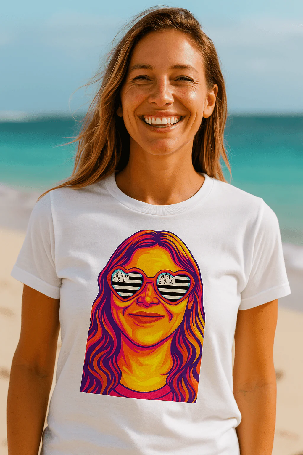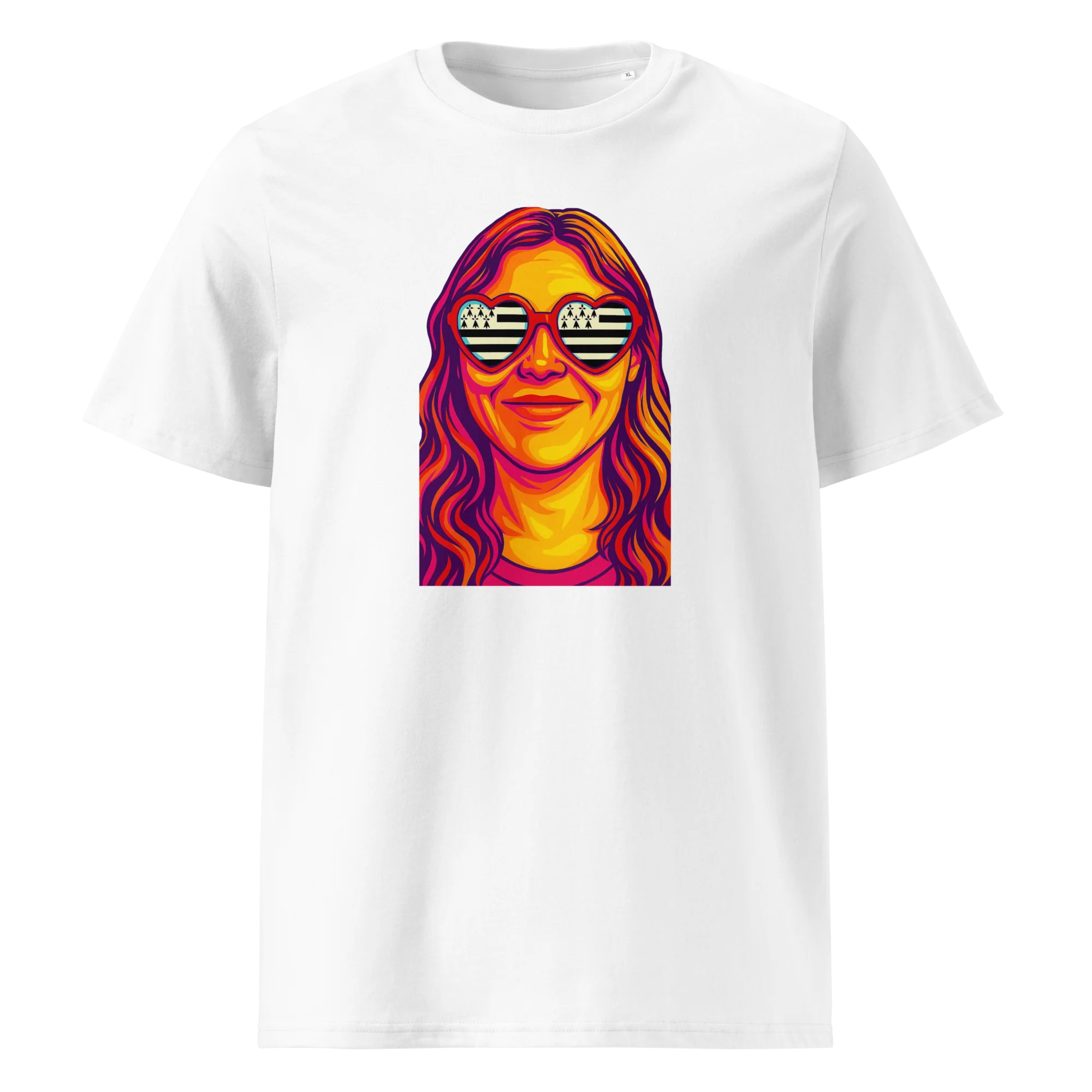 Quand la Bretagne s’invite dans ton regard… et sur ton t-shirt. 😎Une illustration pop, des lunettes en forme de cœur, et à l’intérieur ? Les rayures noires et blanches du Gwenn-ha-Du. Ce t-shirt unisexe en coton bio est une déclaration d’amour à la Bretagne, aussi douce pour la peau que stylée pour l’été.